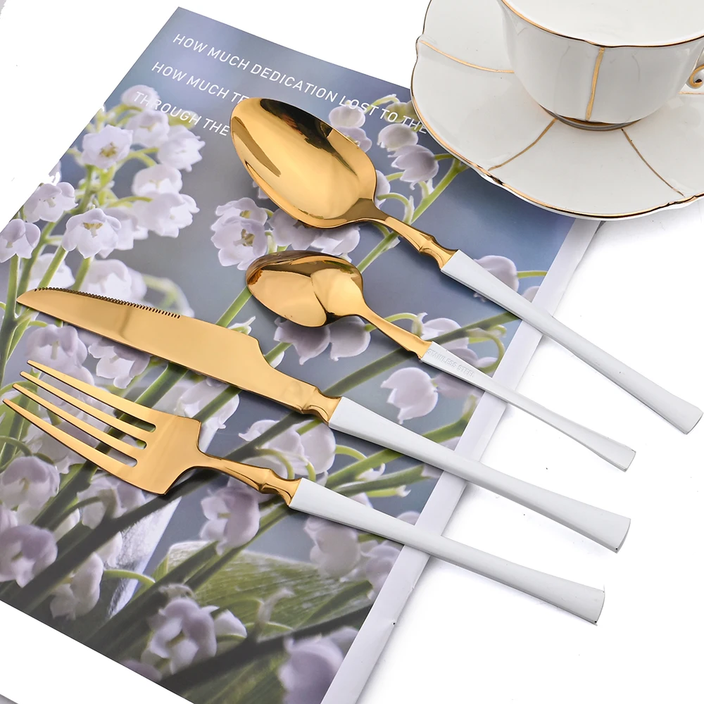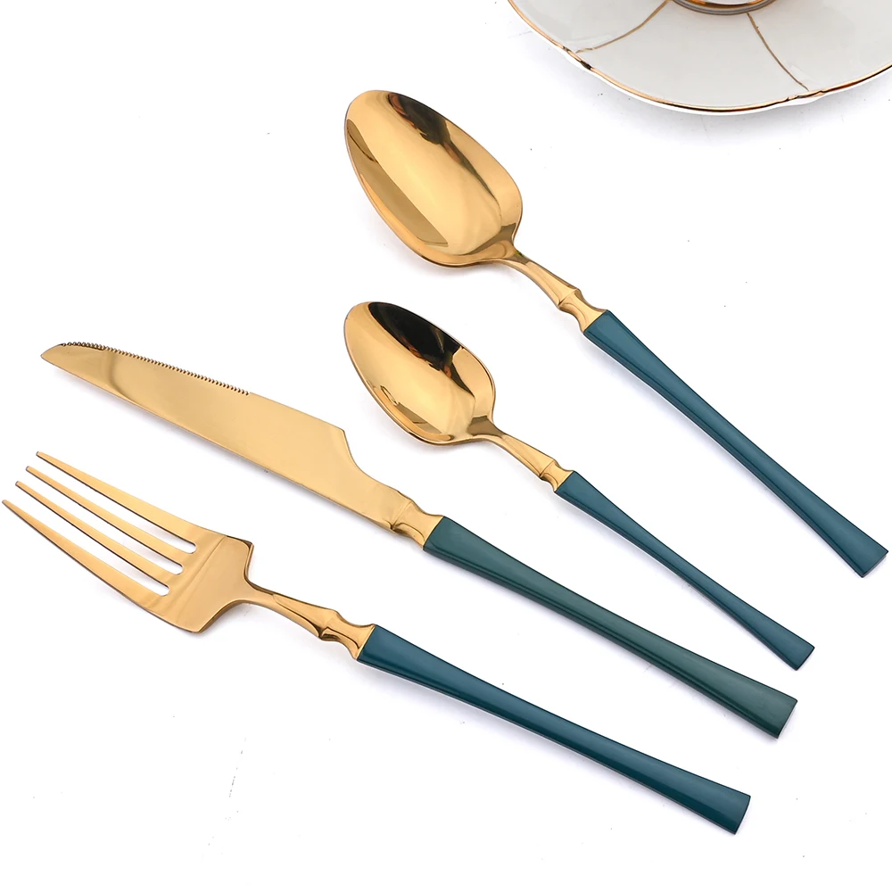 24 pezzi in acciaio inossidabile set di posate in oro coltello forchetta cucchiaio coltello da bistecca forchetta cucchiaio stoviglie retrò adatto per la cucina del ristorante
