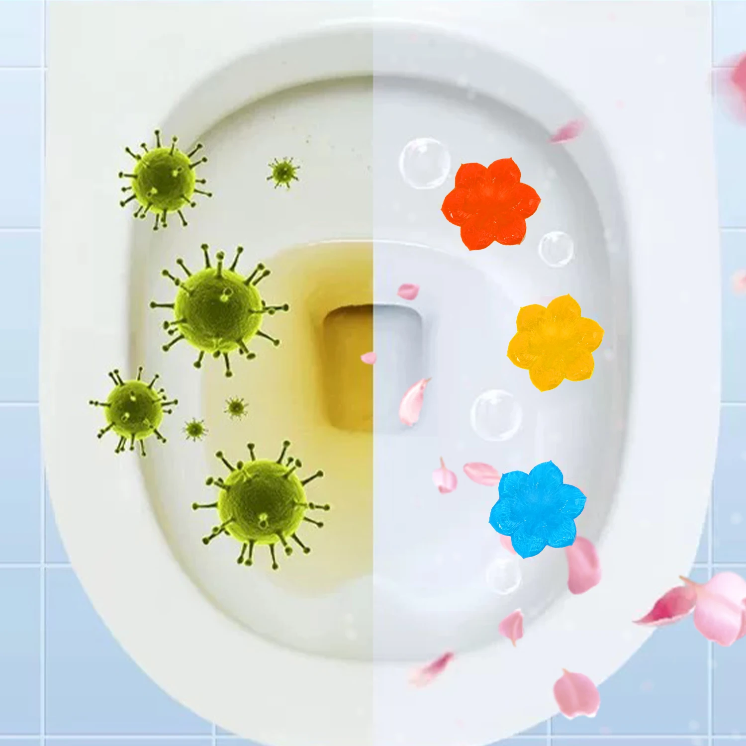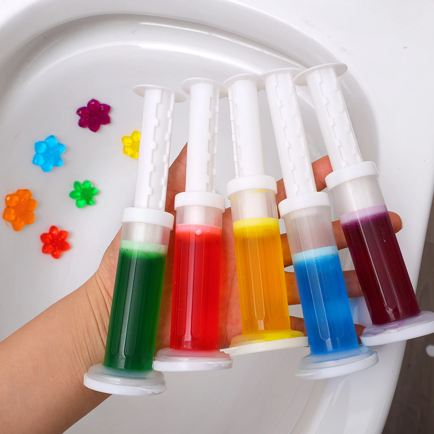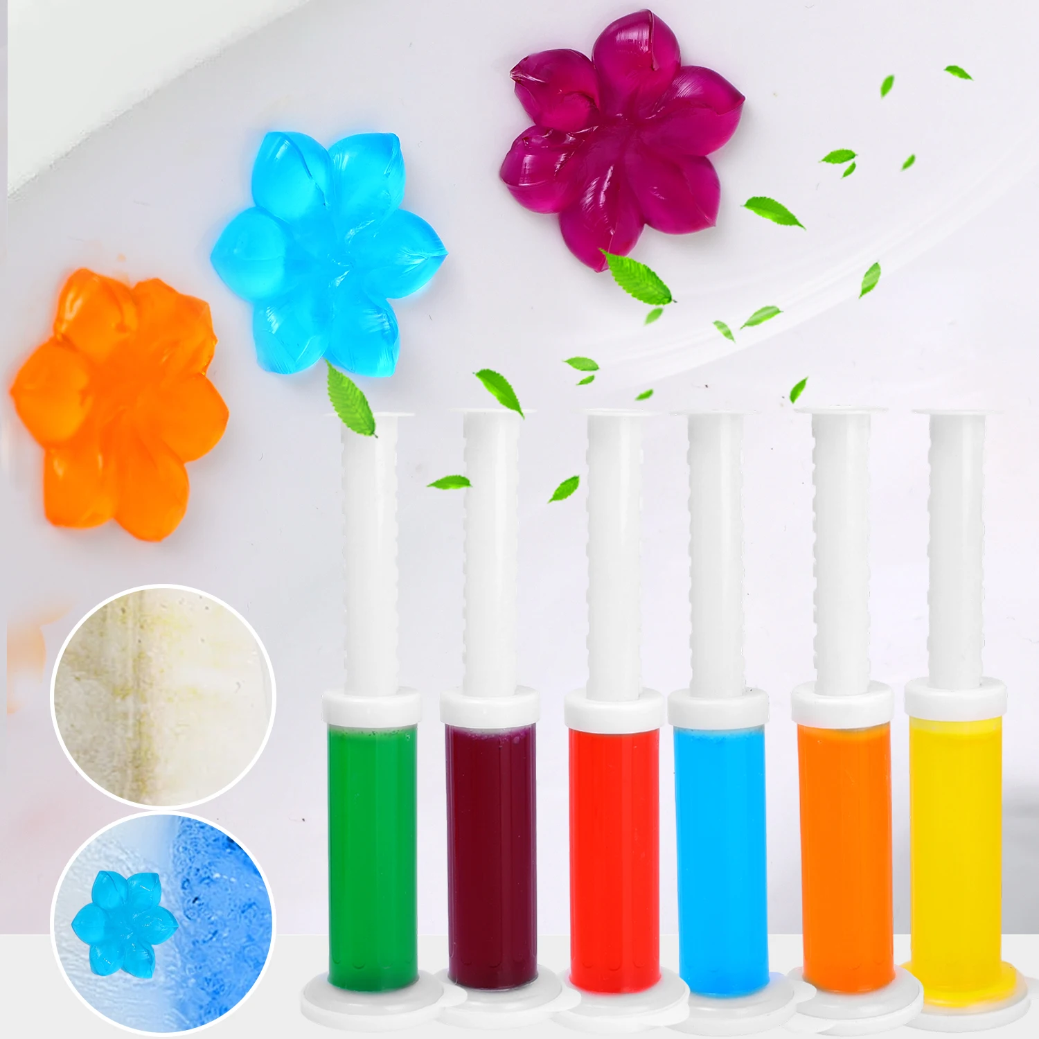 Usage: Gently squeeze the gel in the tube to the edge of the urinal or toilet with a push tube, and flush it with water to release fragrance. One can produce 12 flowers