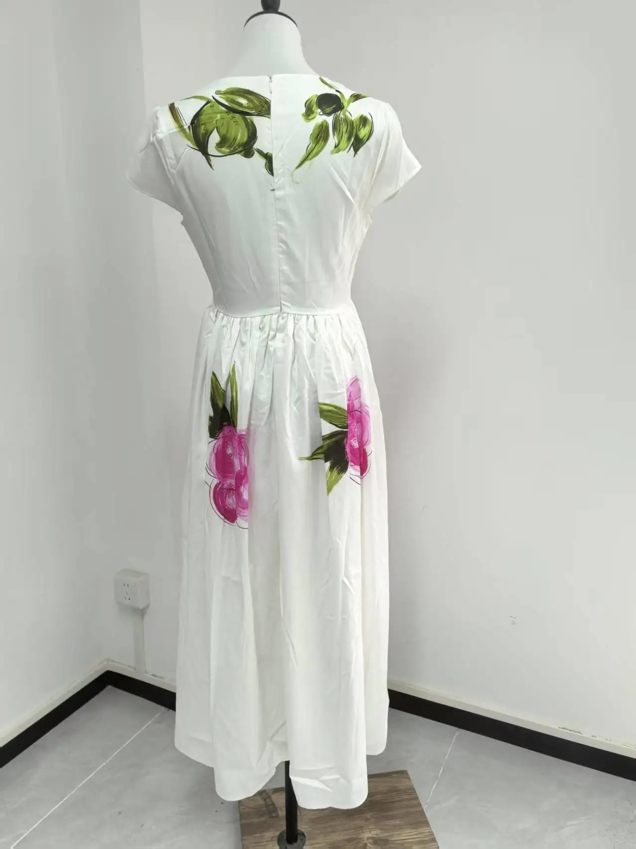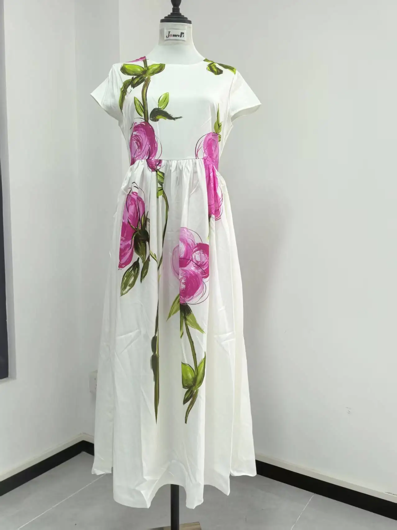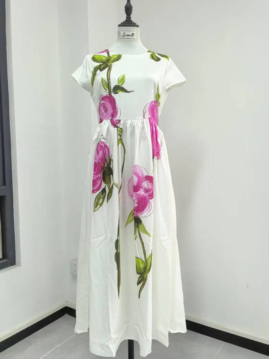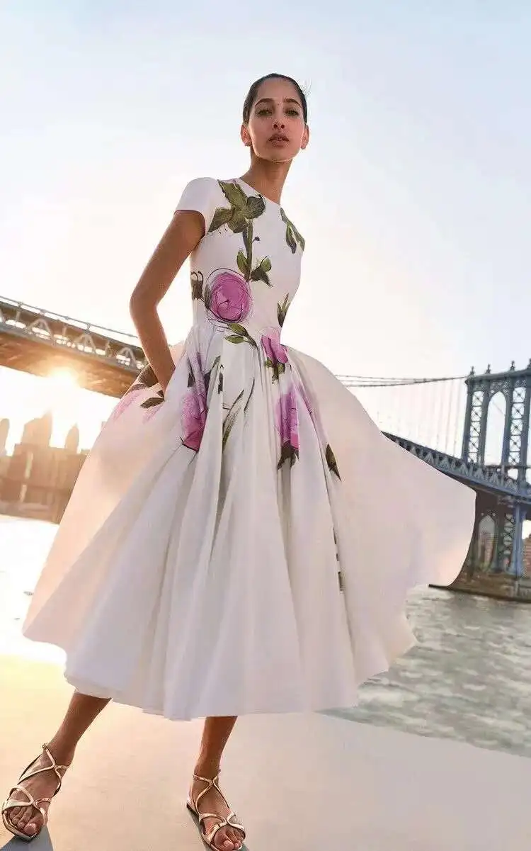4 reviews for Abiti lunghi bianchi floreali eleganti Abito longuette in raso da sera con maniche corte stampato a maniche corte per le vacanze estive da donna