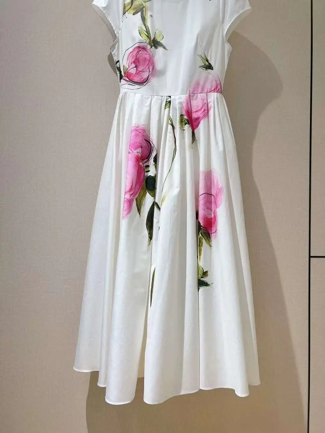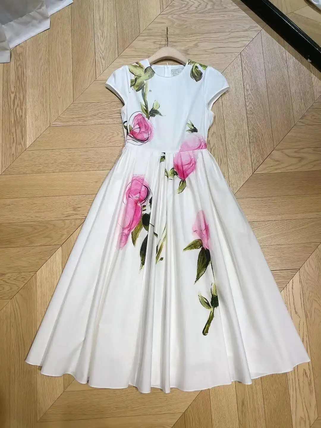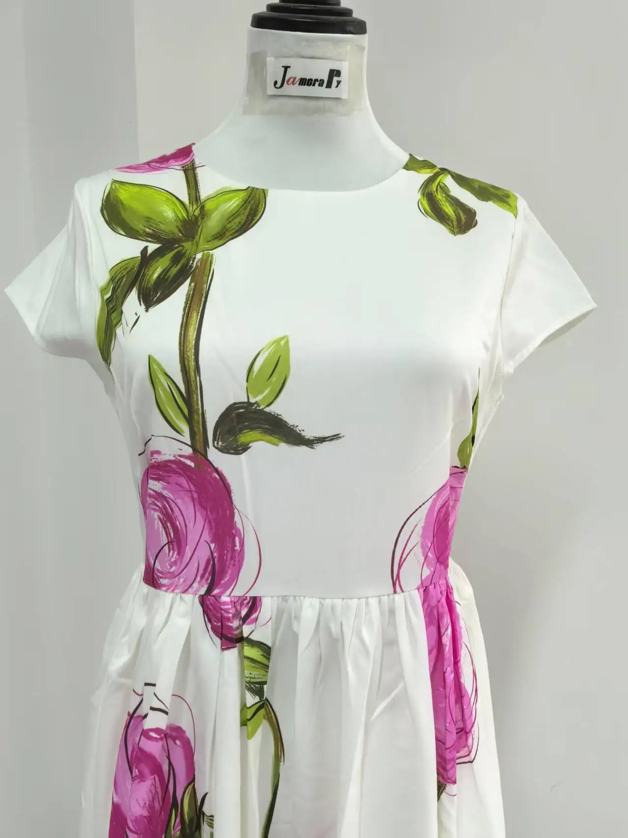 4 reviews for Abiti lunghi bianchi floreali eleganti Abito longuette in raso da sera con maniche corte stampato a maniche corte per le vacanze estive da donna