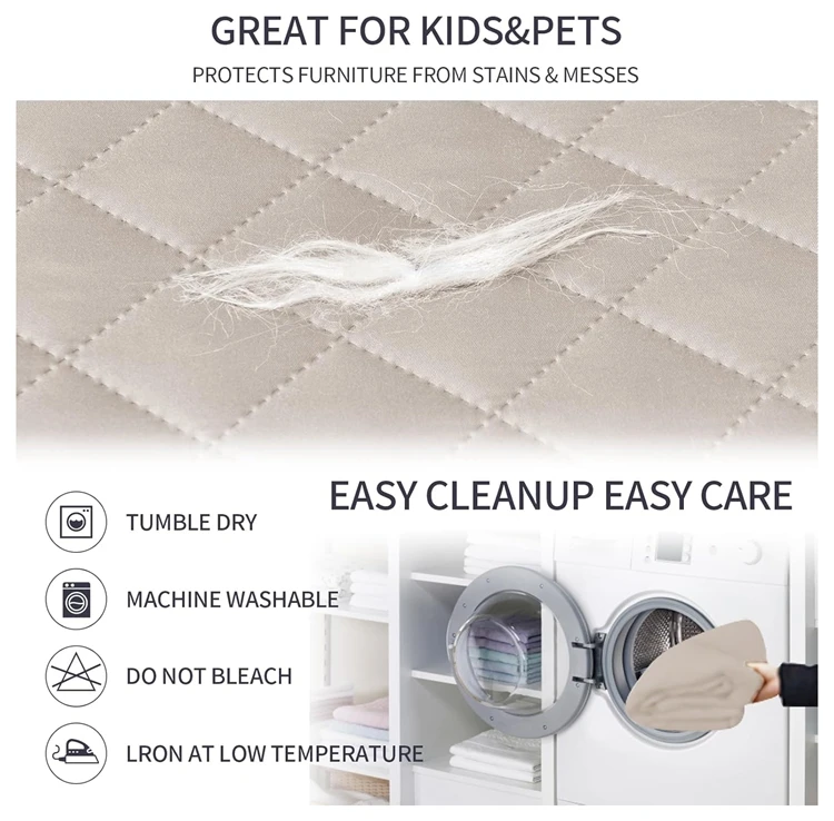 Utilizzo del materiale in tessuto abrasivo impermeabile da 80 g, il strato impermeabile di superficie può bloccare la penetrazione dei liquidi (come bevande e l’urina di animali domestici) e solo la superficie è poco umidificata per evitare l’umidità all’interno del divano.Supporta lavatrice (temperatura dell’acqua ≤ 30℃), non candeggina/secca, asciugatura rapidamente all’aria senza rughe dopo la pulizia.
