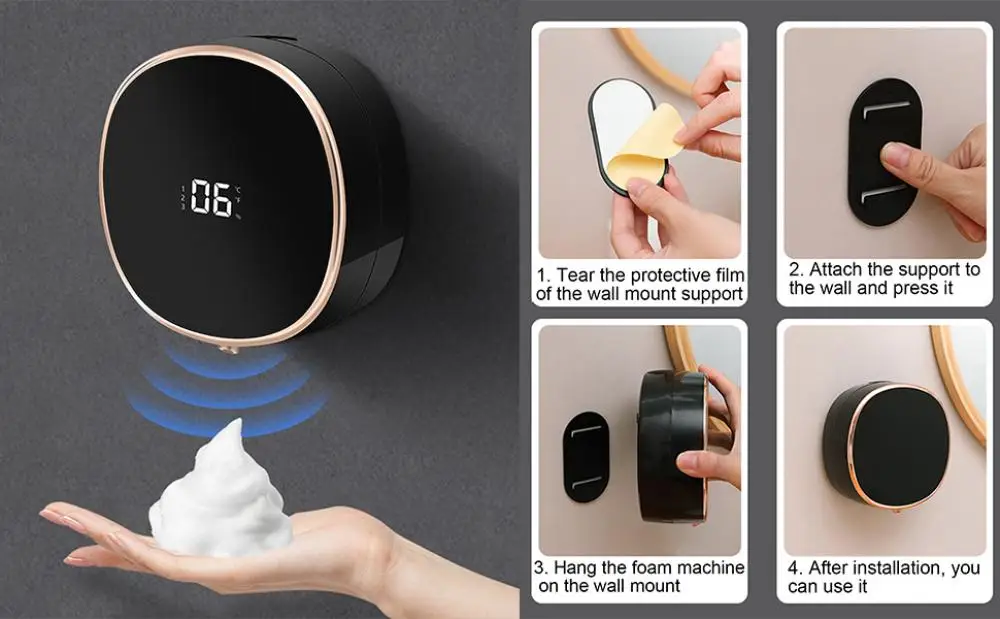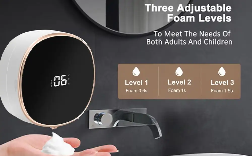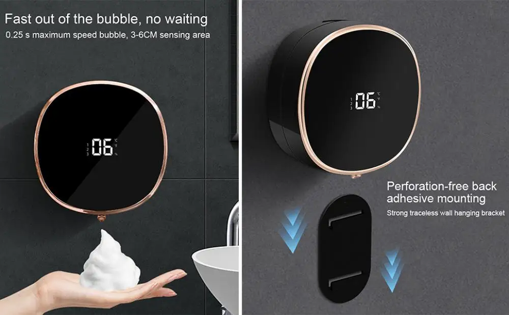 1 review for Dispenser di sapone elettrico con pulsante a sfioramento Dispenser di sapone elettrico touchless Montaggio a parete per Home Office Hotel per bagno