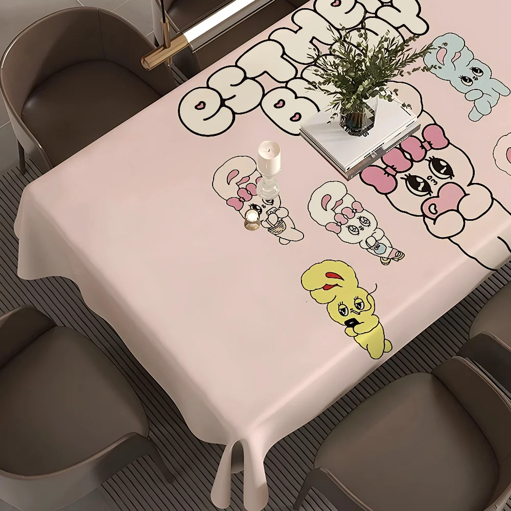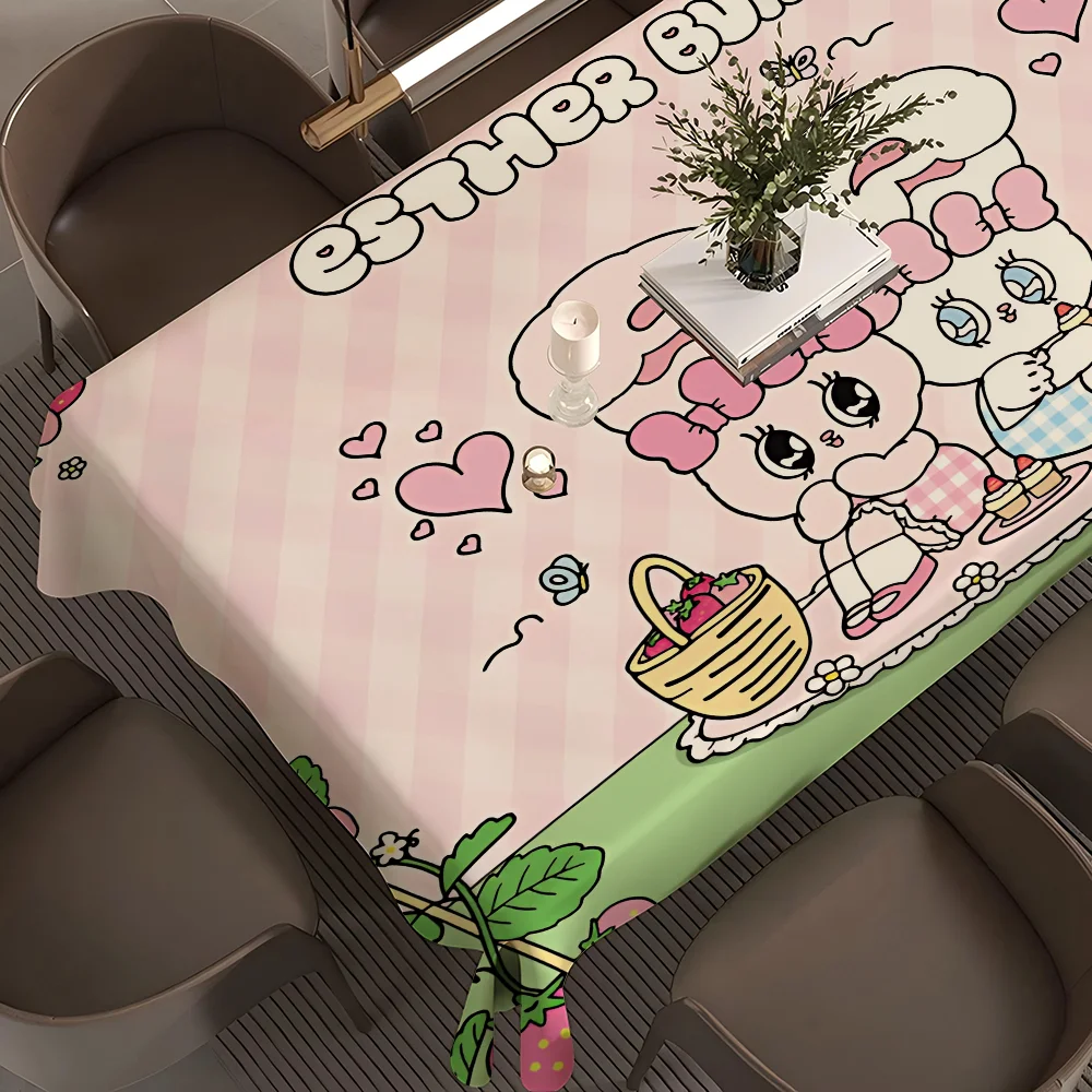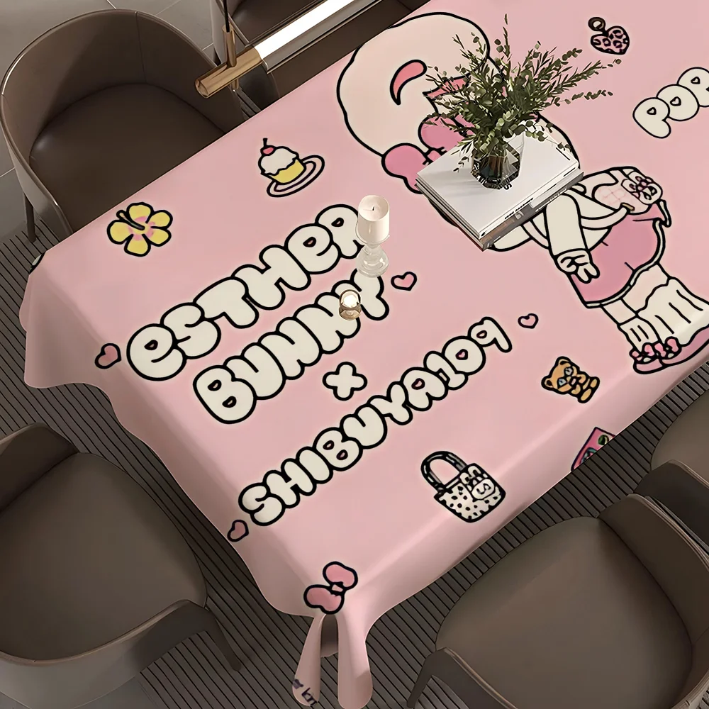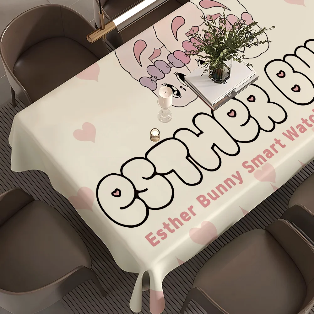 E-Esther B-Bunny Cartoon Tablecloth Tea Coffee Table Cloth Waterproof Cloth Wall Stove Rack Rectangular Wedding Banquet Home