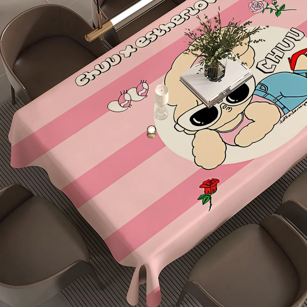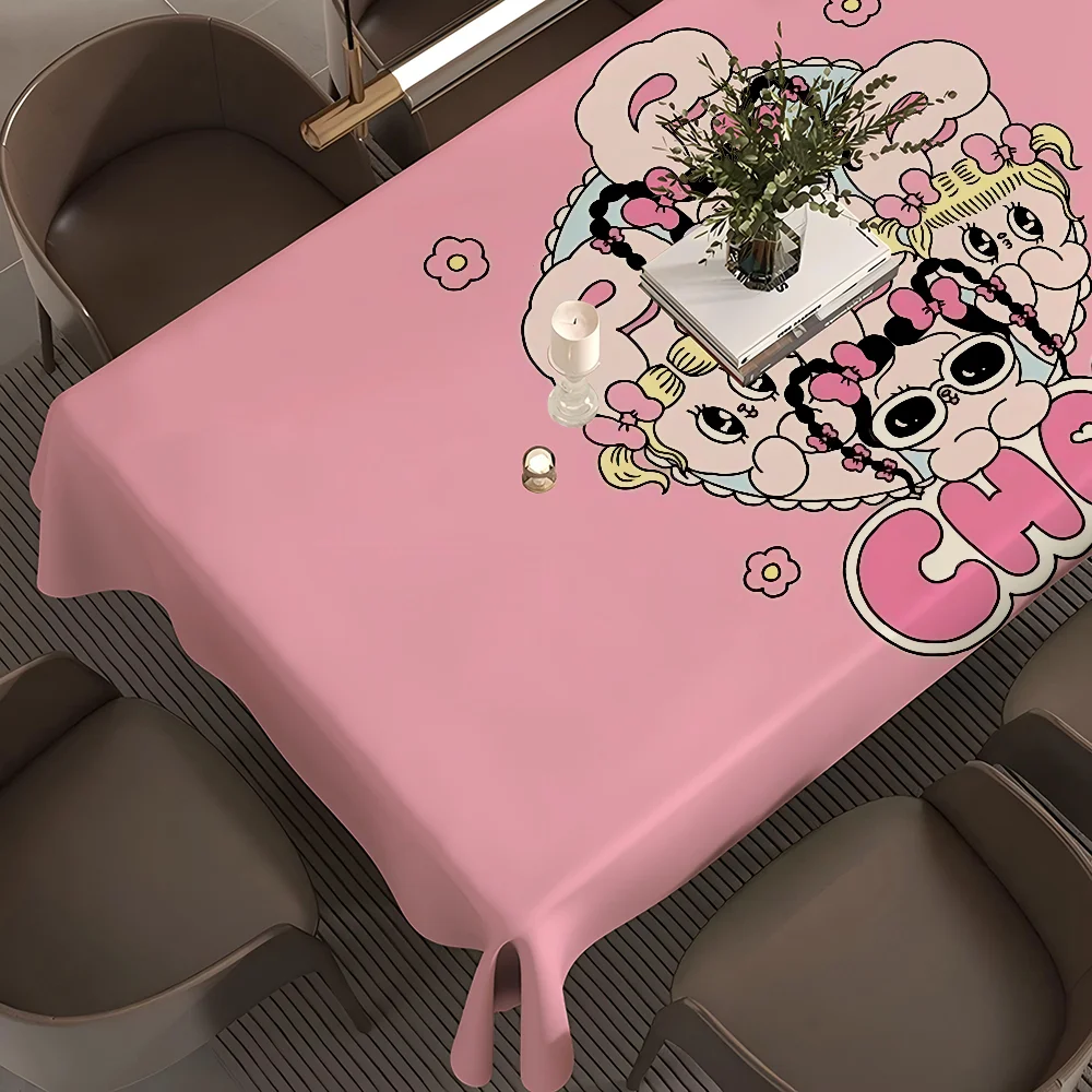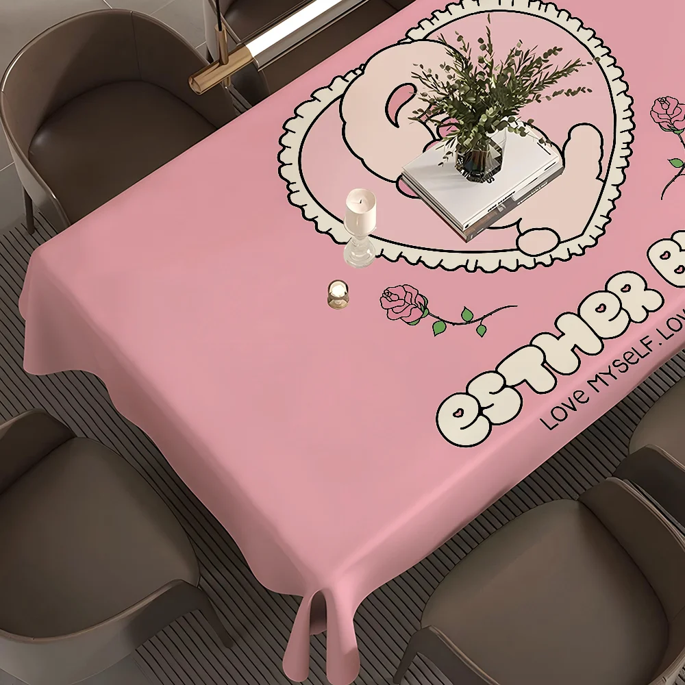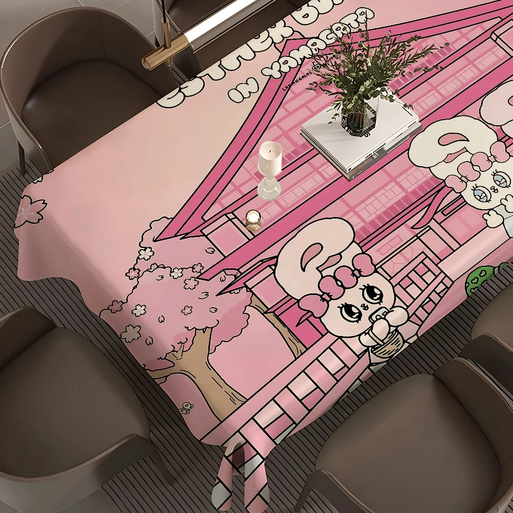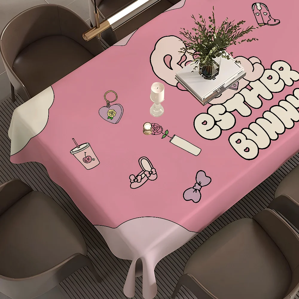 E-Esther B-Bunny Cartoon Tablecloth Tea Coffee Table Cloth Waterproof Cloth Wall Stove Rack Rectangular Wedding Banquet Home