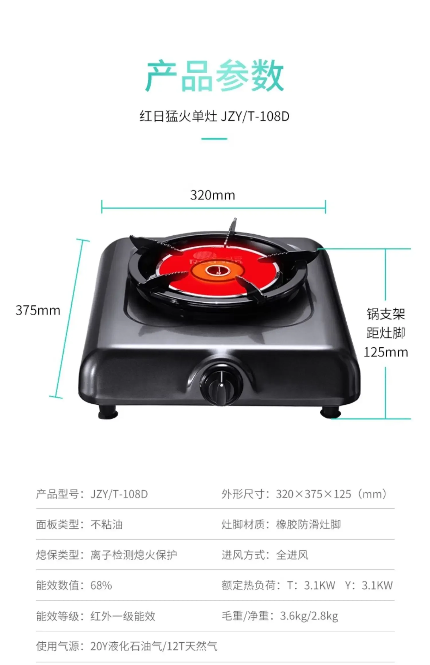 Fornello a gas Red Sun Fornello singolo Fornello liquefatto naturale per uso domestico Flagship ufficiale a infrarossi da tavolo