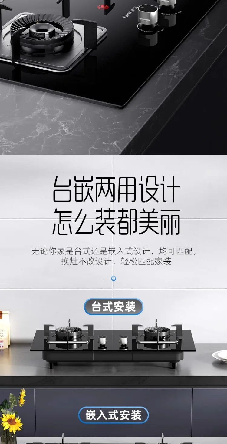 Fornello a gas Skyworth a doppio fuoco da incasso per la casa GPL Gas naturale AB