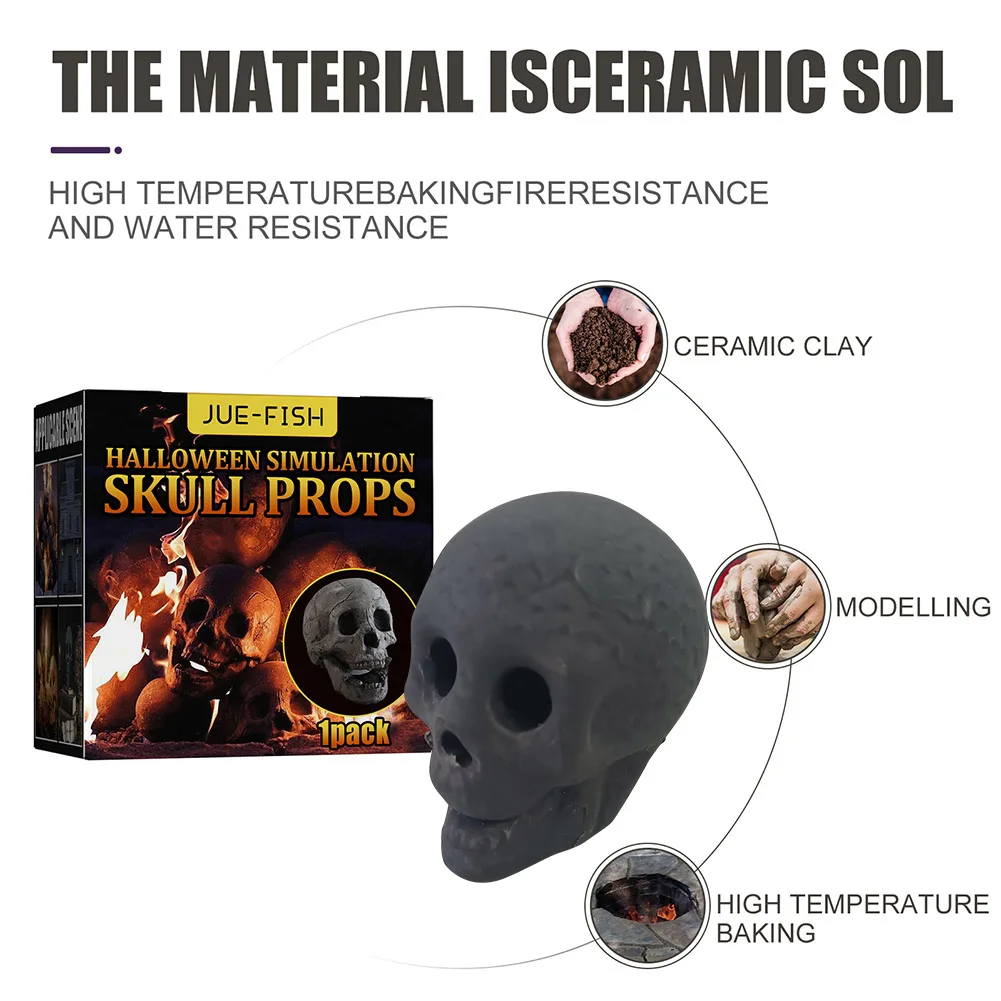 1. Teschio ignifugo di alta qualità: lo scheletro in ceramica è realizzato con fiber ceramiche durevoli e può resistere a temperature fino a 3500 gradi Fahrenheit (circa 1537.8 gradi Celsius) quando cotto ad alte temperature. Lo scheletro in ceramica è lo strumento di archiviazione perfetto per braciere o caminetti. Può essere inserito in caminetti di varie dimensioni e può anche essere utilizzato per decorare le case.