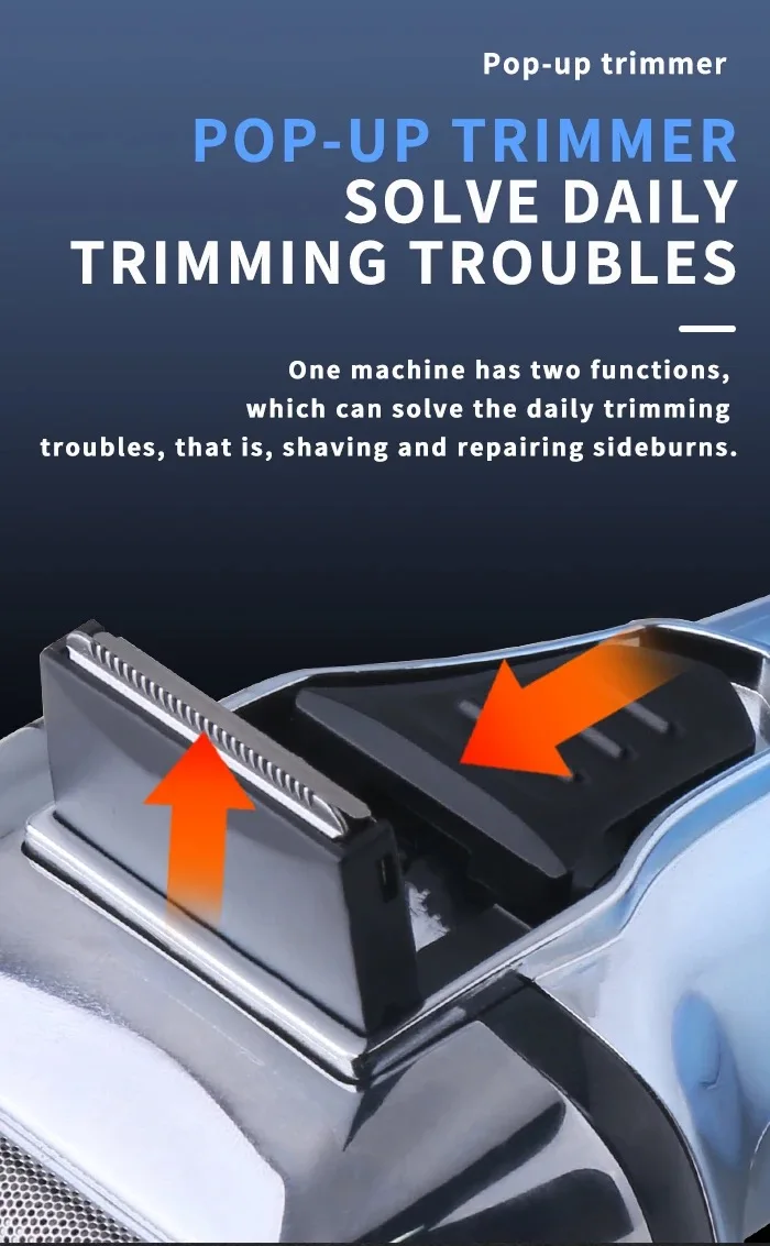 Trimmer di precisione pop-up: il rasoio elettrico senza fili da uomo con un rifinitore di precisione per barba pop-up one-touch è comodo per tagliare pattini, baffi e barbe lunghe.