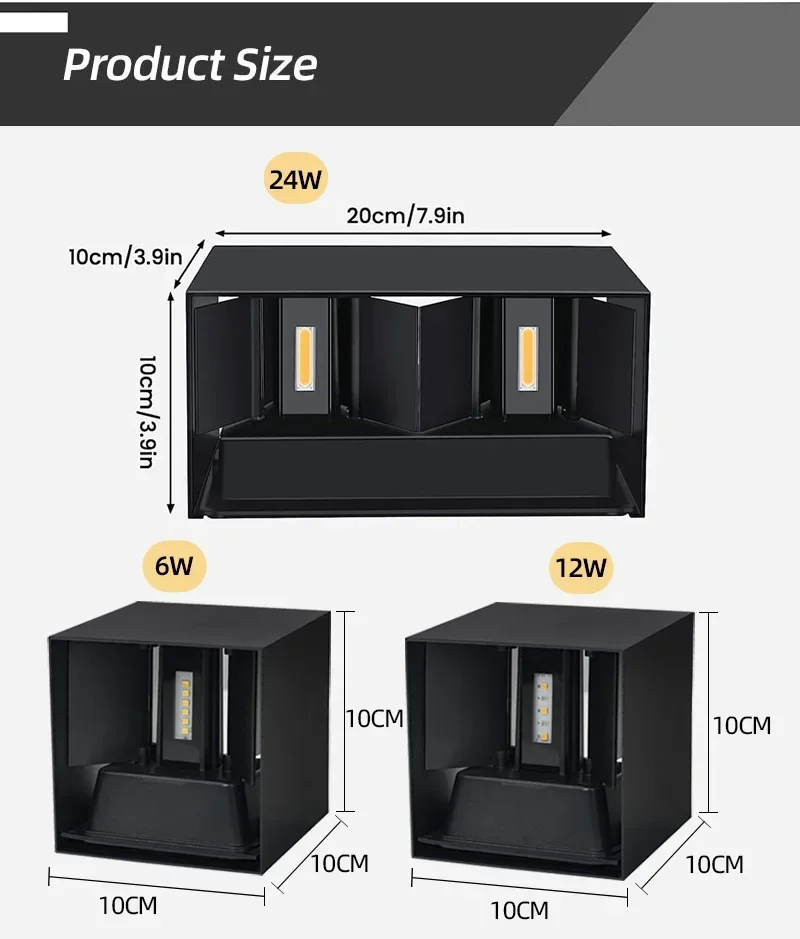 ●La lampada da parete a LED per interni/esterni fornisce un’eccellente effetto luminoso e prestazioni impermeabili IP65.Il design moderno fa questa lampada da parete da 6 W/12 W/24 W ideale per scene interne ed esterne, come camere da letto, soggiorni, balconi, uffici, corridoi, giardini, cortili, ecc.