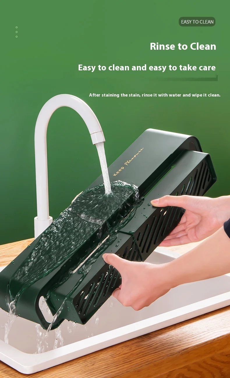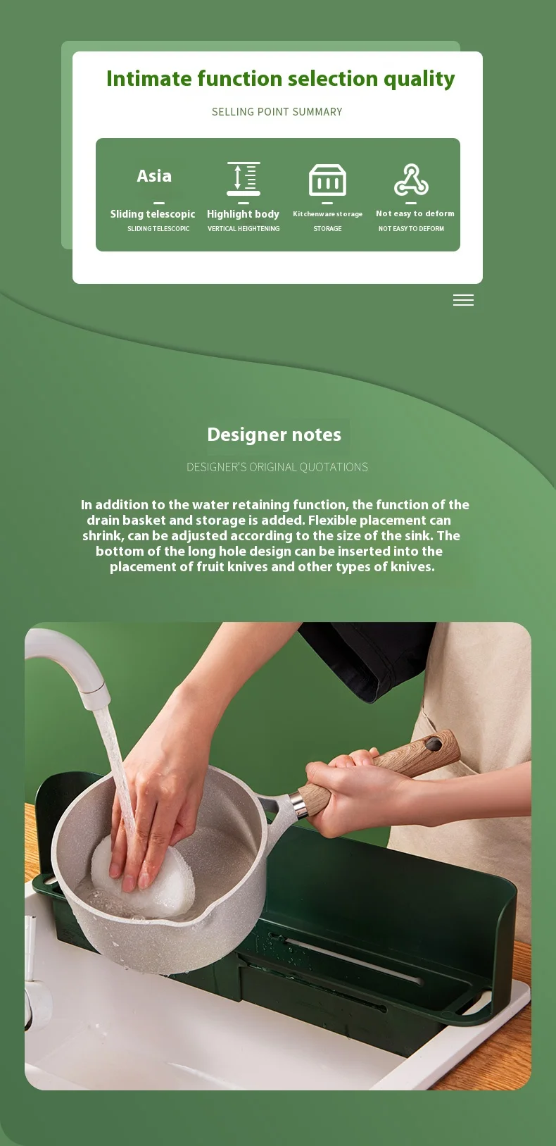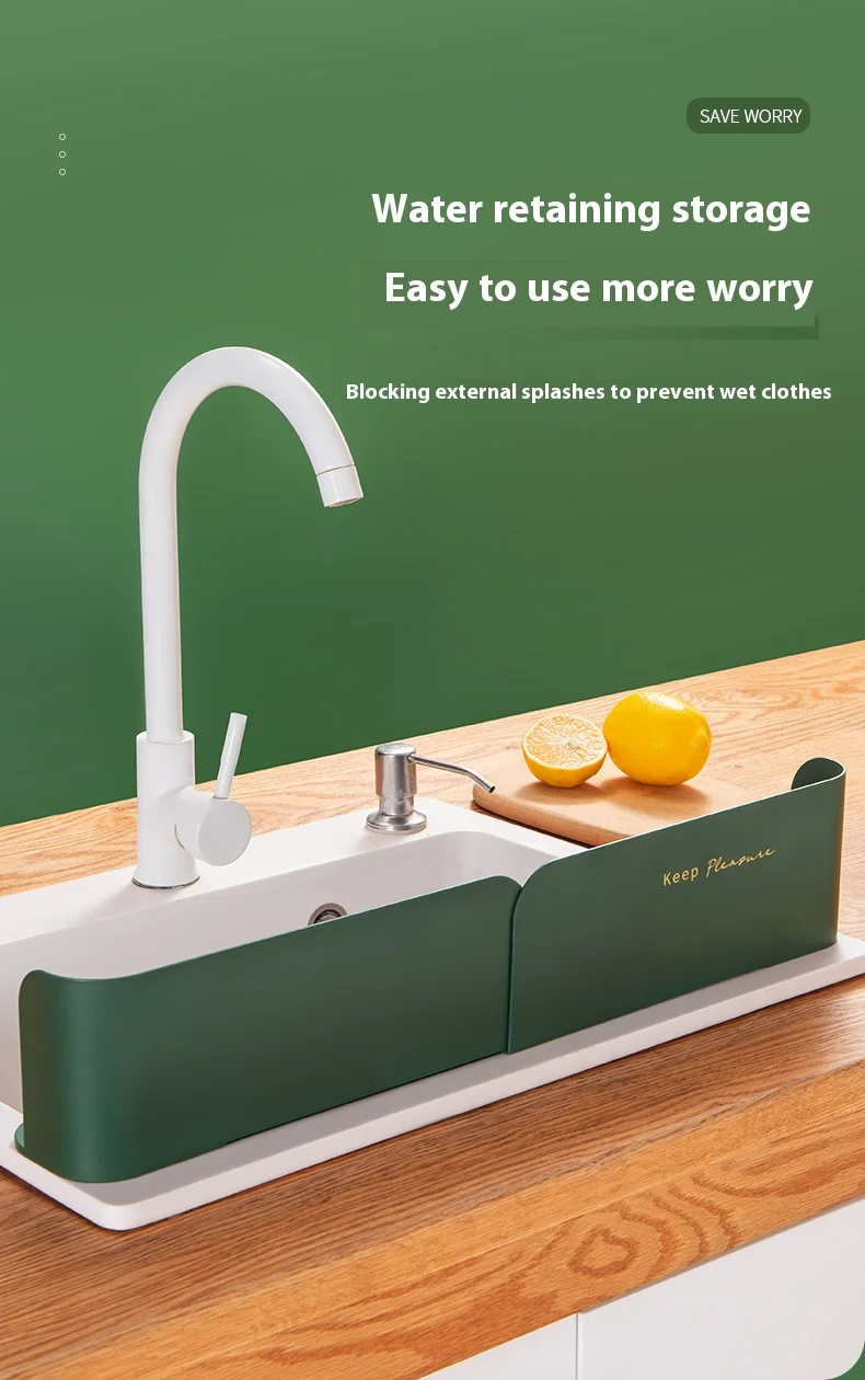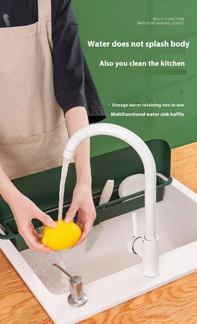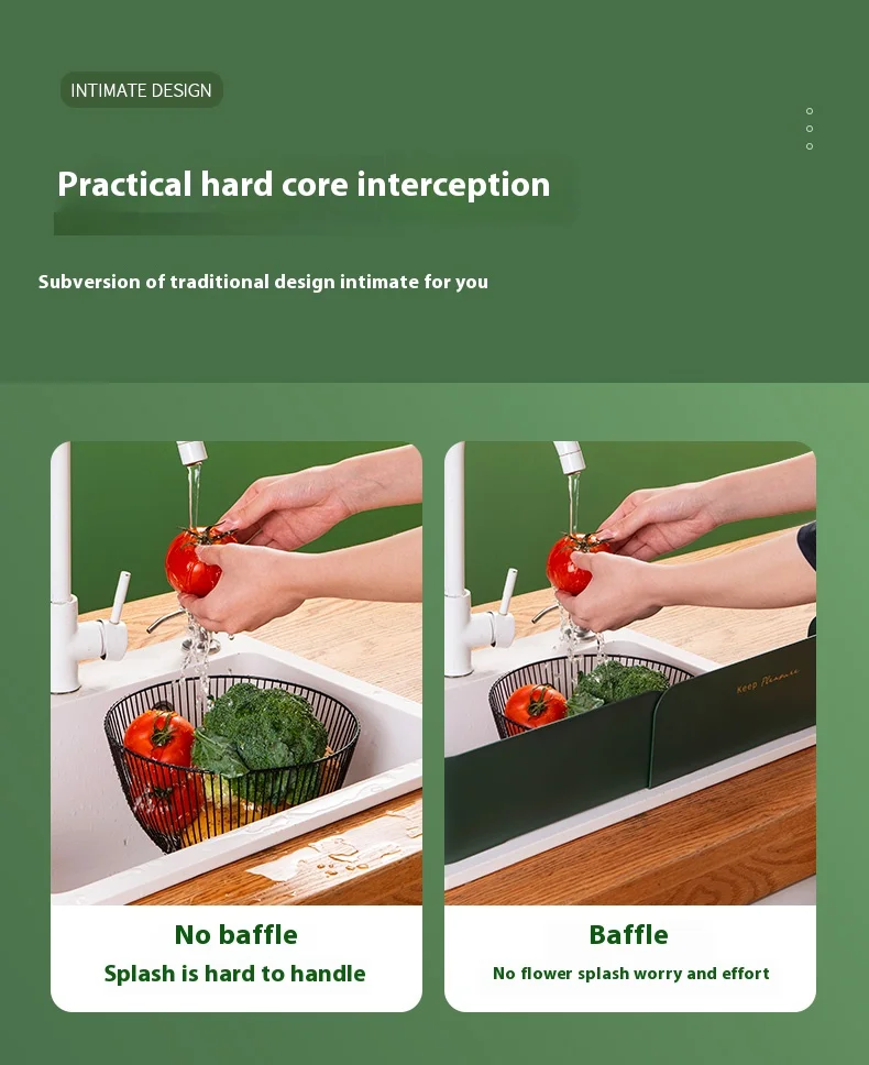 Lavello da cucina scalabile, pannello antispruzzo, deflettore impermeabile per il lavaggio di frutta e verdura, cestello per riporre e drenaggio