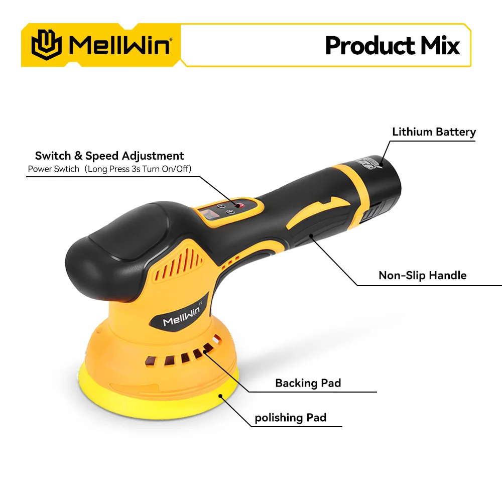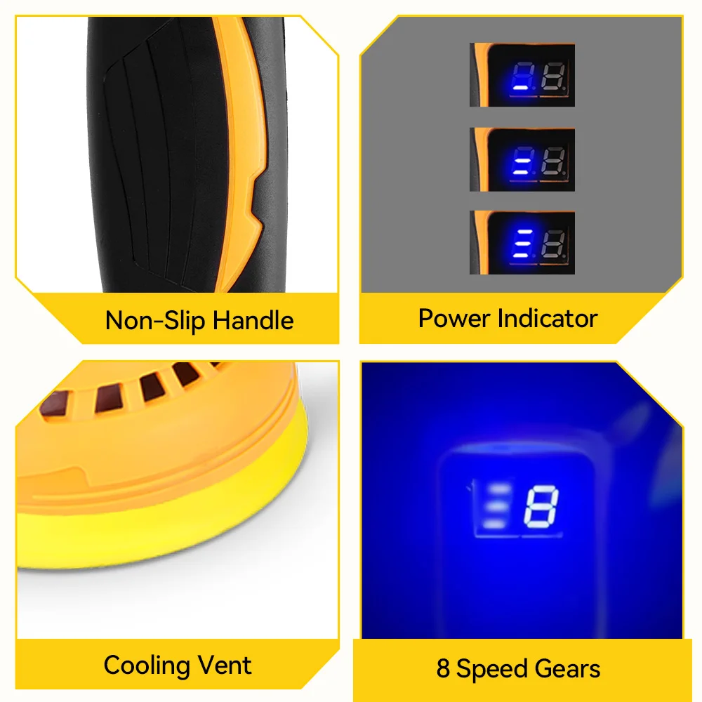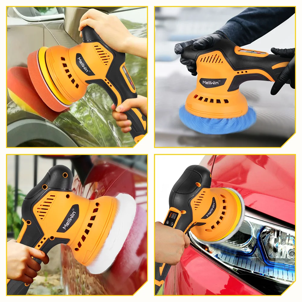 MELLWIN 125mm 8 March Digital Display Cordless Auto Electric Polisher Auto Wax Polisher Sander For 12V Battery