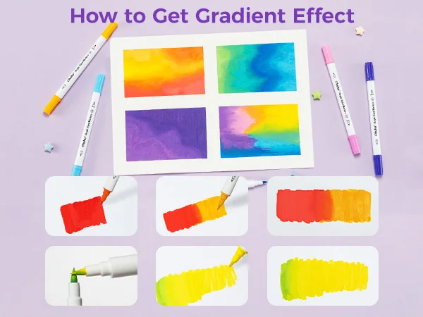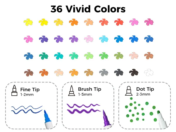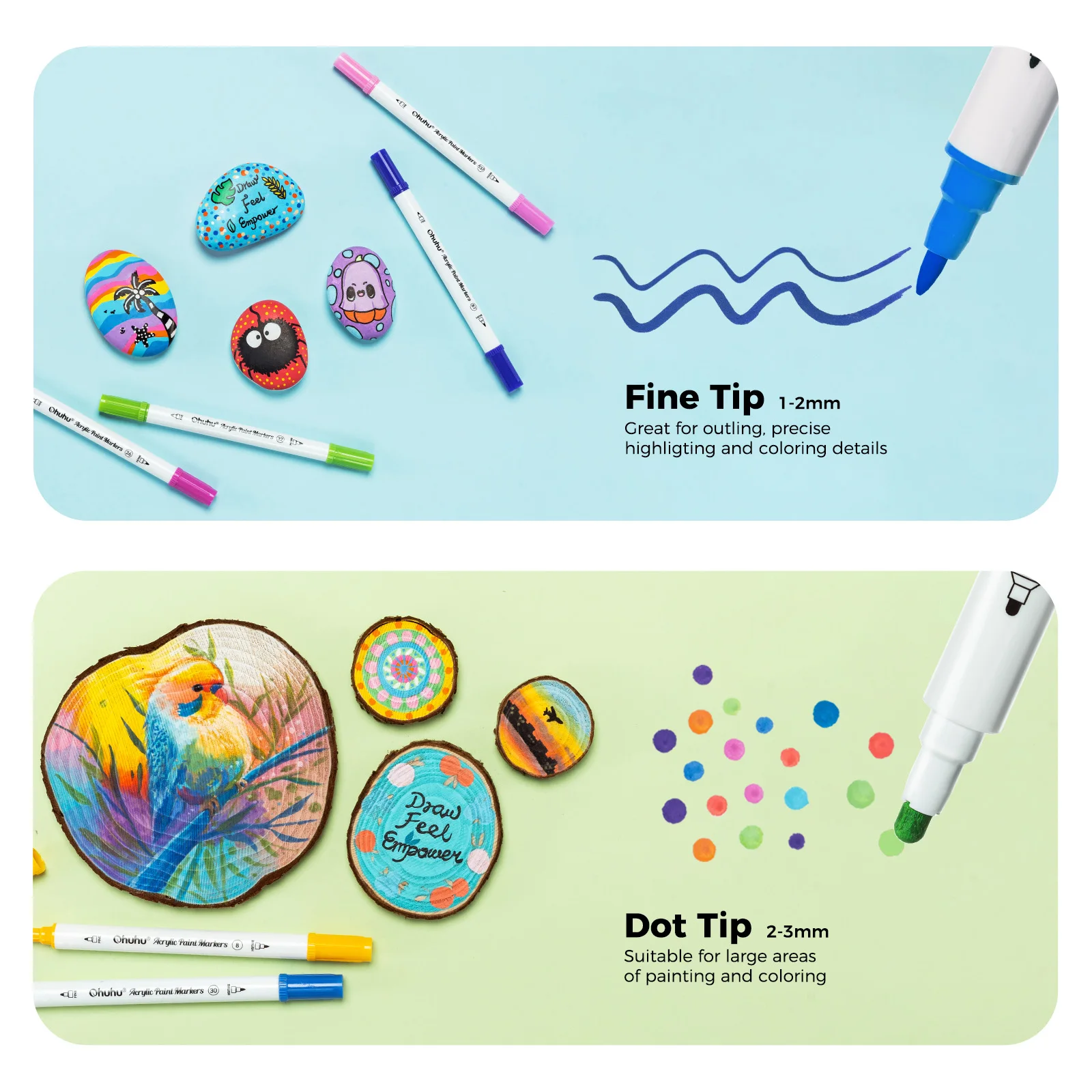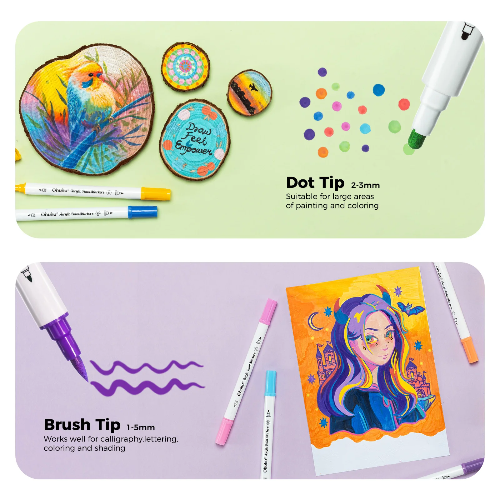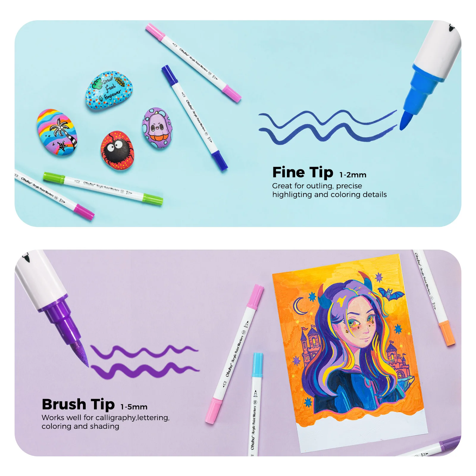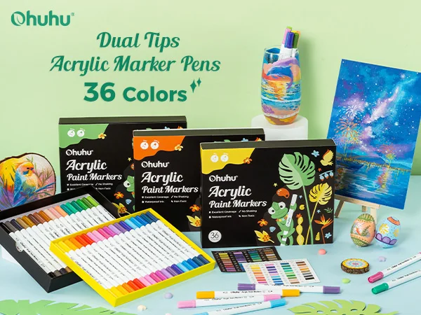 Ohuhu Pennarelli per vernice acrilica Nucleo di cotone 36 colori Penne per vernice a doppia punta Pennarelli acrilici ad alta capacità Disegno resistente alla luce impermeabile