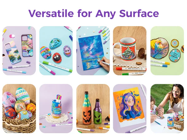 10 reviews for Ohuhu Pennarelli per vernice acrilica Nucleo di cotone 36 colori Penne per vernice a doppia punta Pennarelli acrilici ad alta capacità Disegno resistente alla luce impermeabile