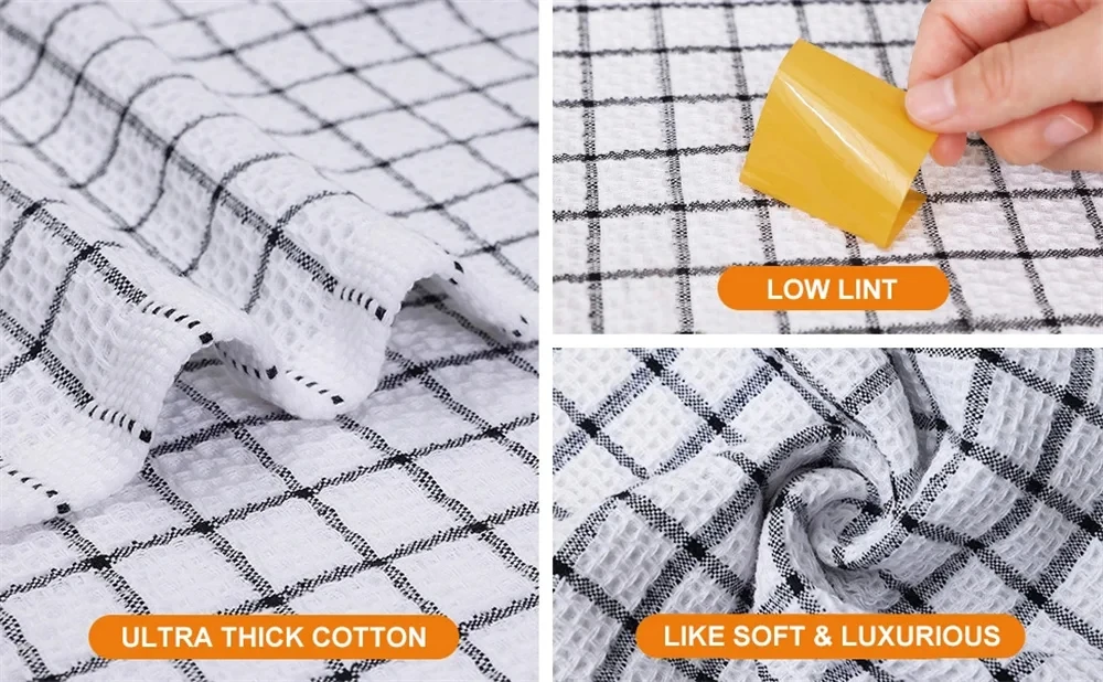 —Tese panni per piatti sono realizzati in cotone 100% con motivo a trama waffle, sono super assorbenti per una pulizia rapida delle rovesci e molto durevoli per l’utilizzo superiore e sopra senza perdere efficacità. Ottimo ricambio per spugne e asciugamani di carta!