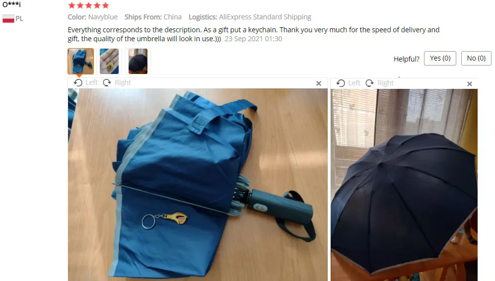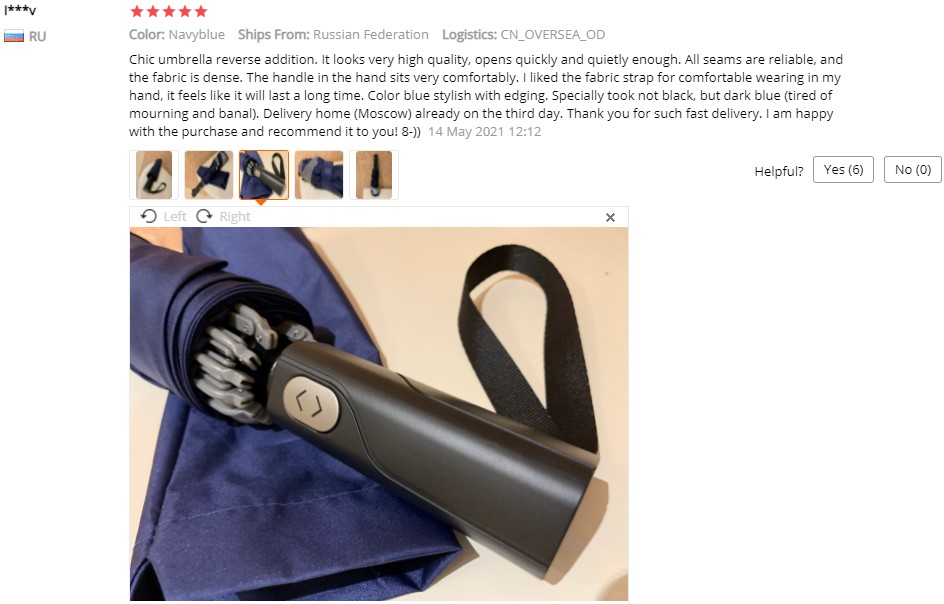 Ho già comprato questo ombrello e sono stato soddisfatto. È sottile ma lo uso solo per la pioggia, per il sole lo considero un po’ trasparente.