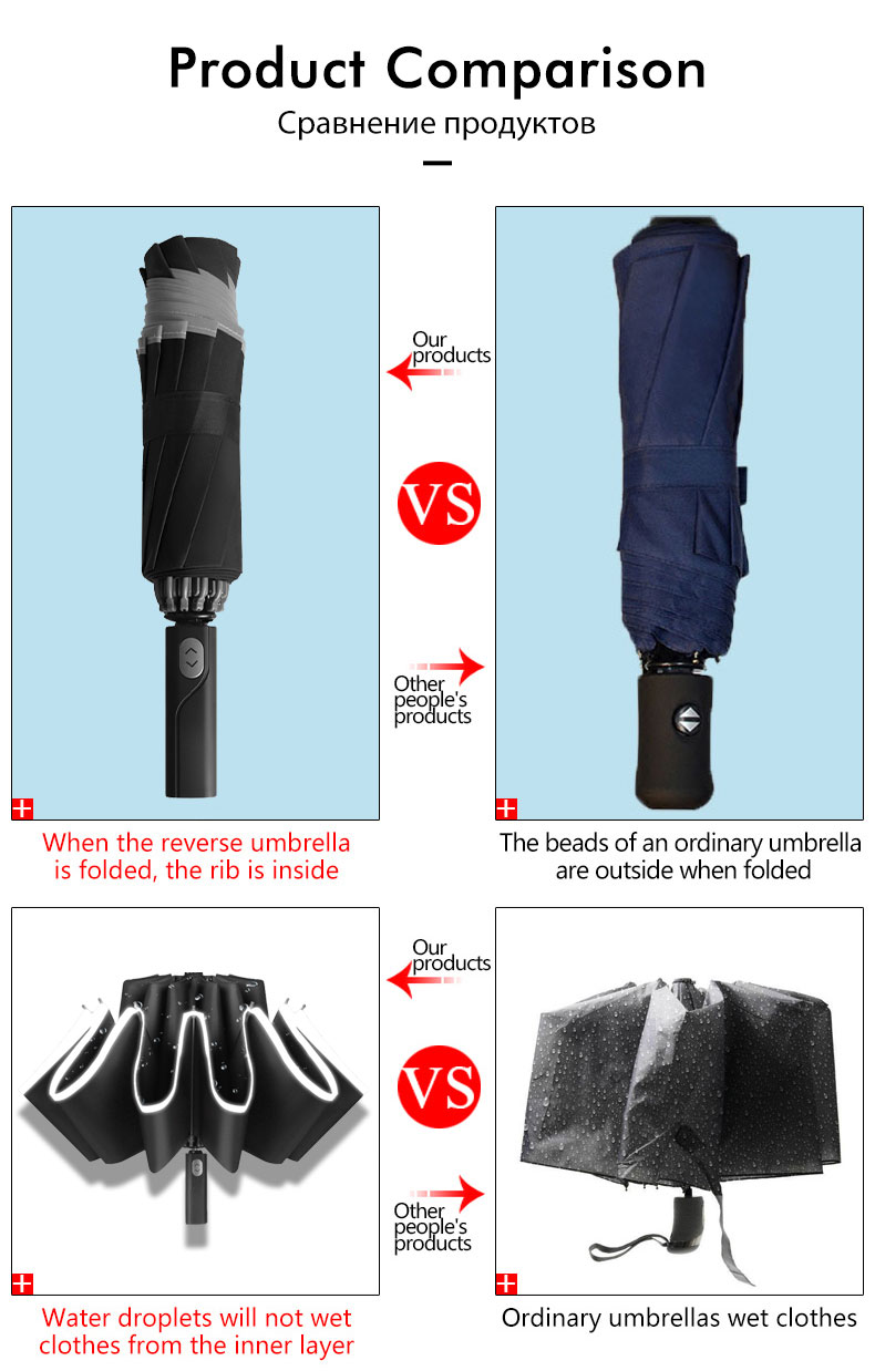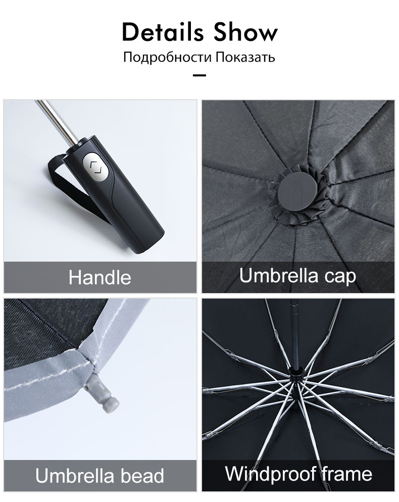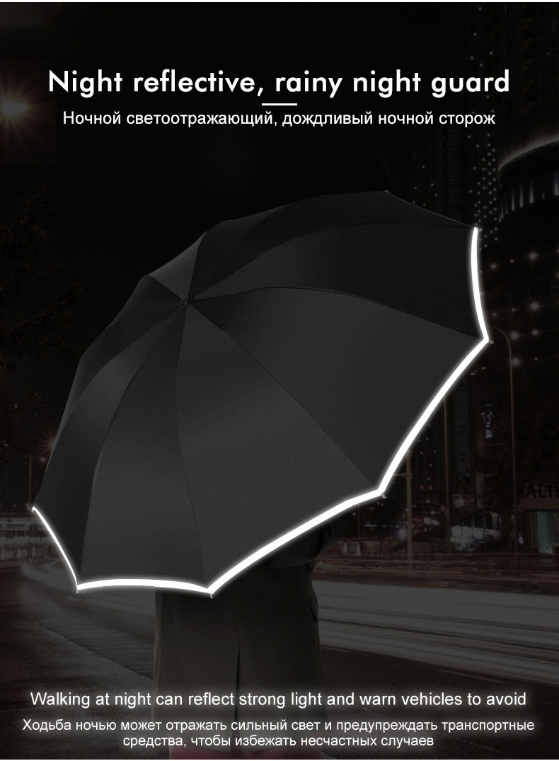Quando l’ombrello tocca la luce al buio, la striscia dell’ombrello si illumina, farlo più sicuro per viaggiare di notte