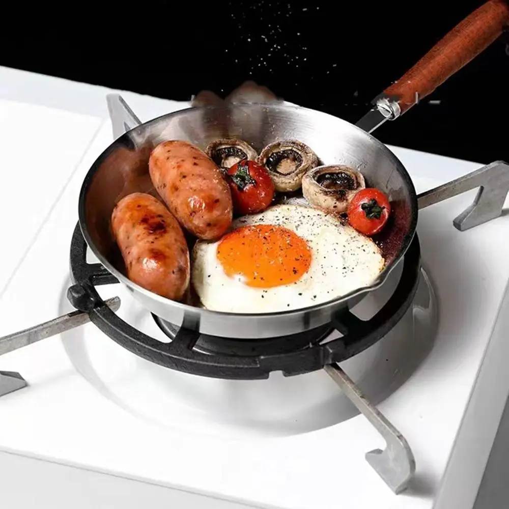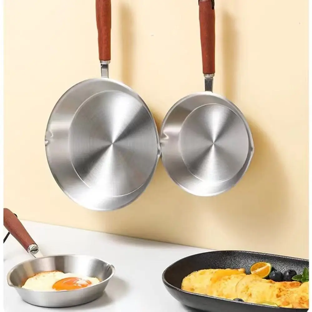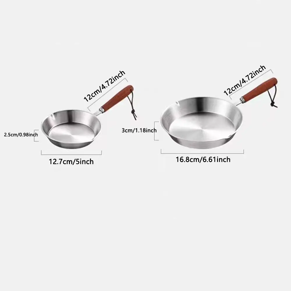 Qualified 304 Stainless Steel: Mini egg frying pan stainless steel. The frying pan is made of durable stainless steel material, resistant to rust and corrosion, and can be used for a long time at home. The bottom of the frying pan is heated evenly to ensure that the food cooks evenly, and the temperature control is strong to prevent the food from burning. The sturdy, easy-grip handle provides added convenience.