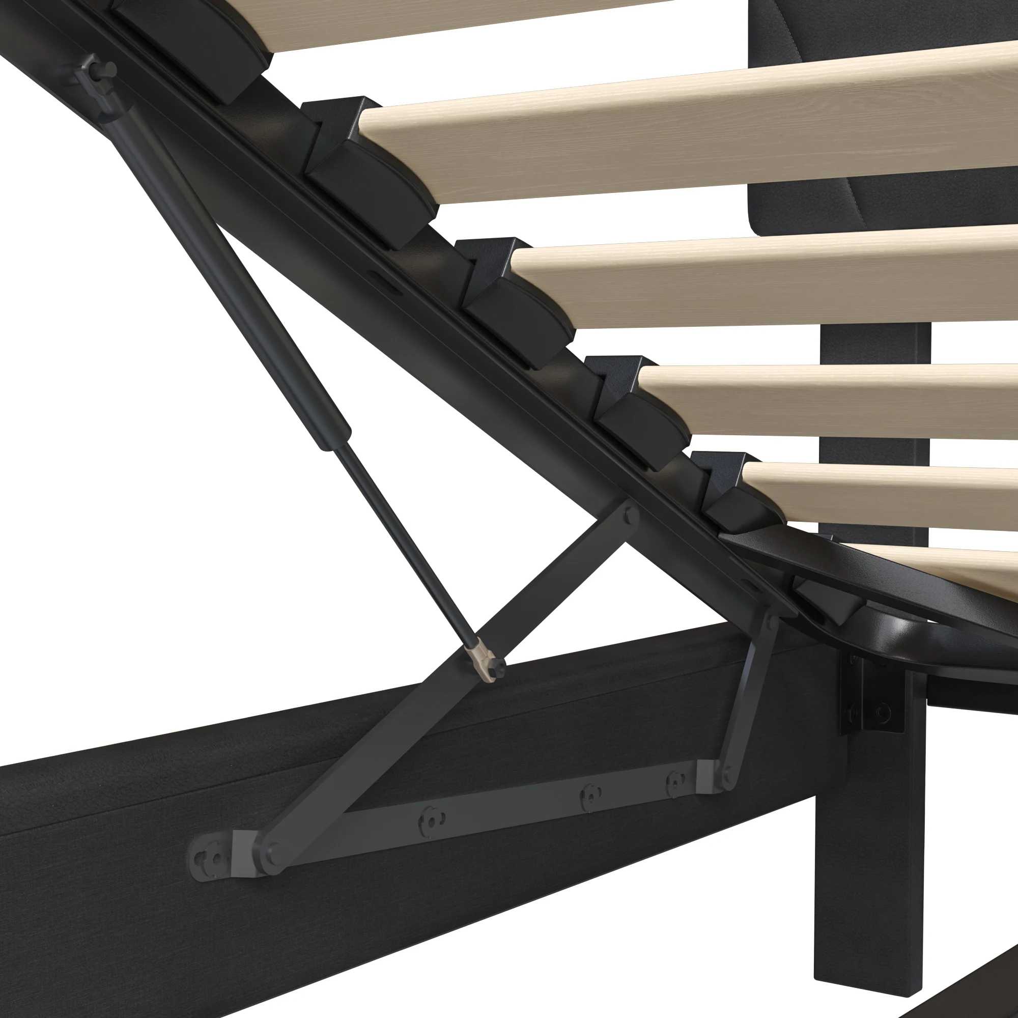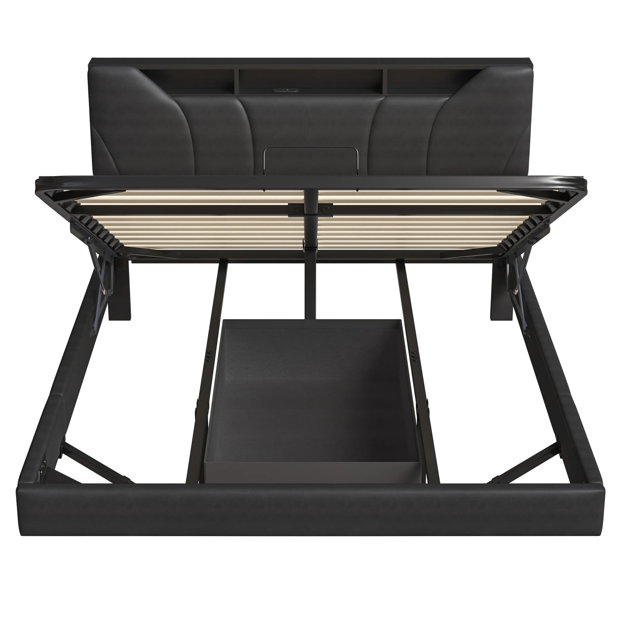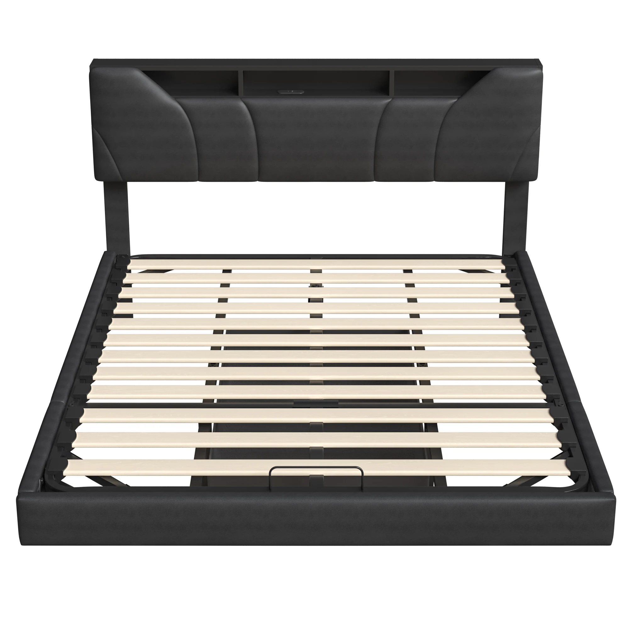 Rosahqnda Letto morbido, Letto portaoggetti con pressione dell’aria, con porte di ricarica LED e USB, Testiera regolabile, Camera da letto, Adulti, Giovani, PU nero