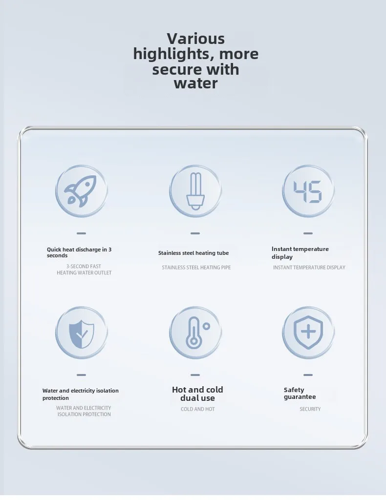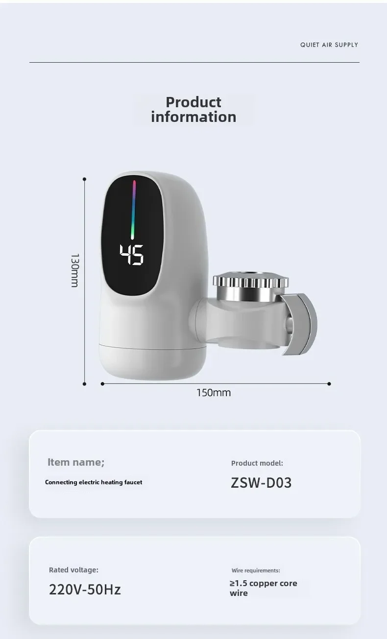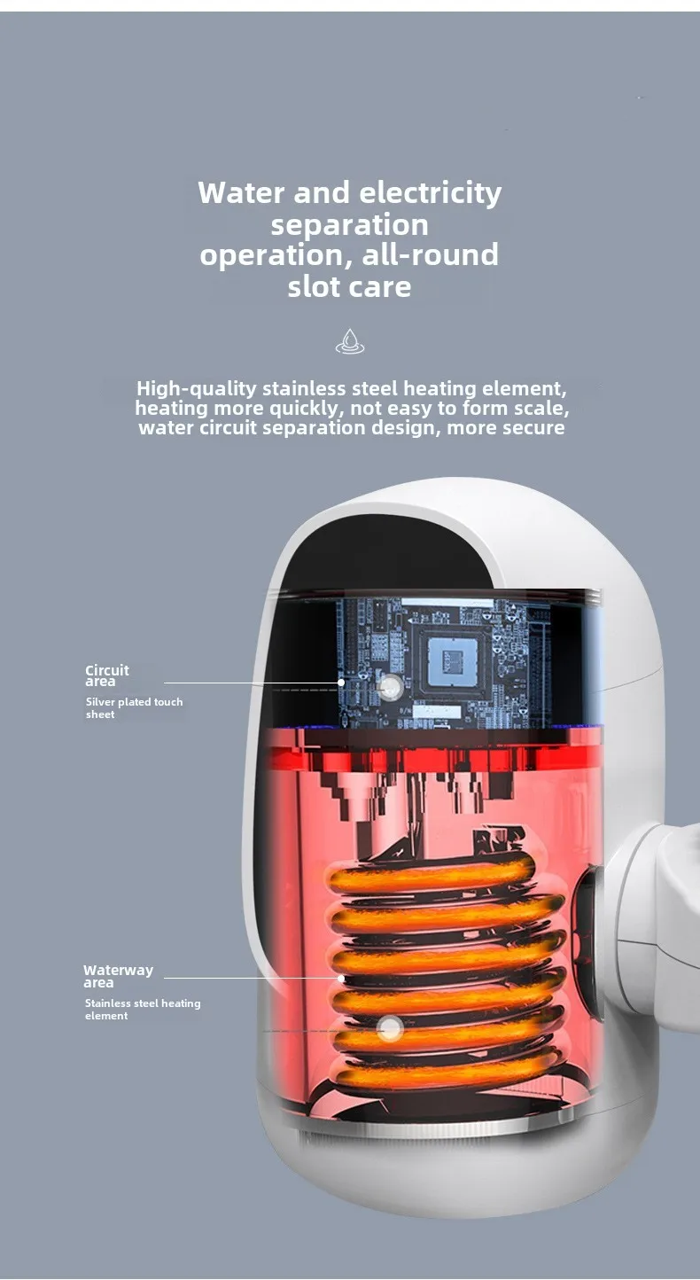 Rubinetto per scaldabagno istantaneo elettrico senza serbatoio da 3000 W per rubinetto per riscaldamento rapido da cucina con display della temperatura