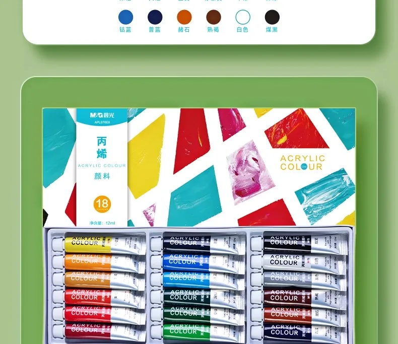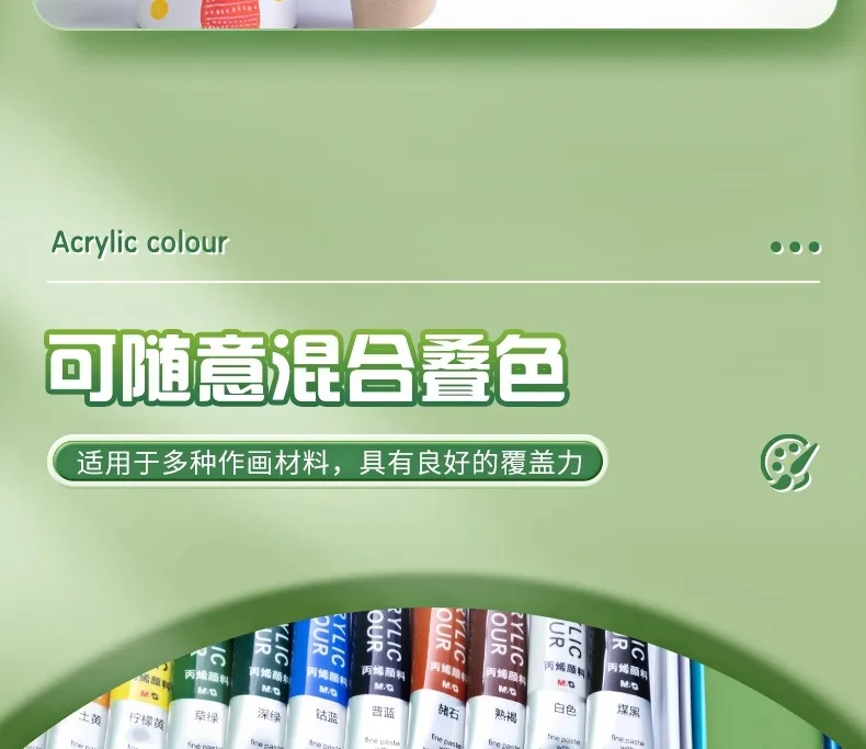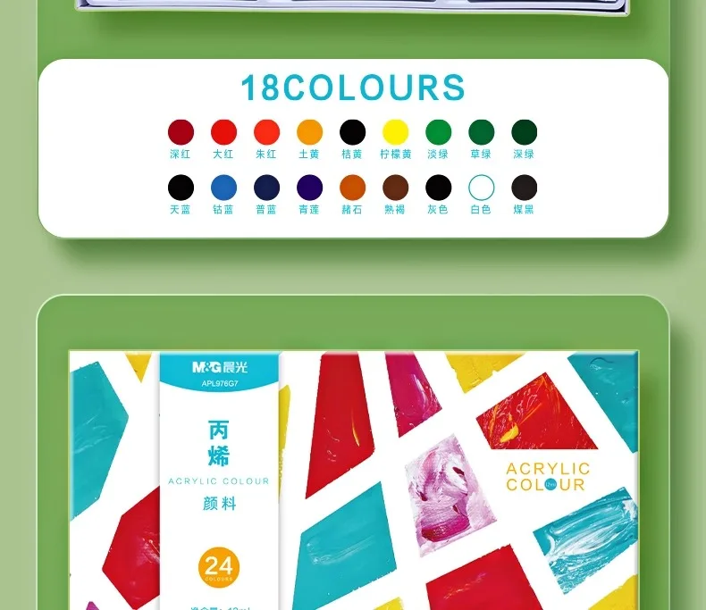 I colori acrilici M&G sono di alta qualità, che inseguono colori vivaci ed applicazioni fluide per un facile dipinto.