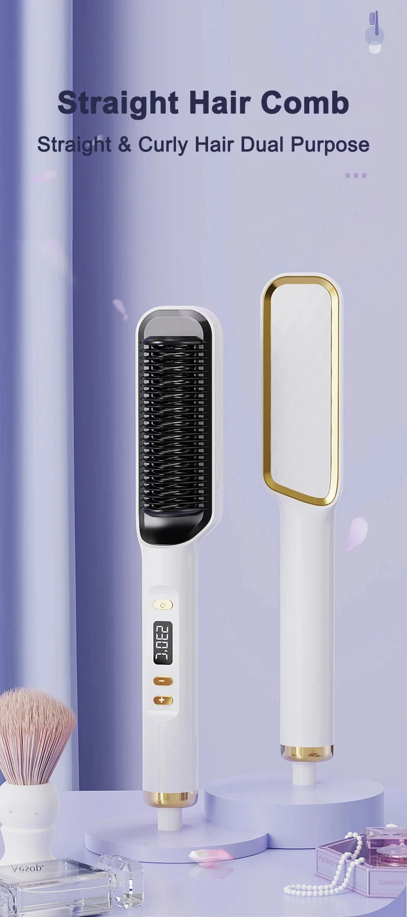 Spazzola lisciante elettrica Pettine caldo Styler per capelli Ioni negativi Anti danno al calore Strumento per lo styling veloce per donne Uomini Viaggi a casa