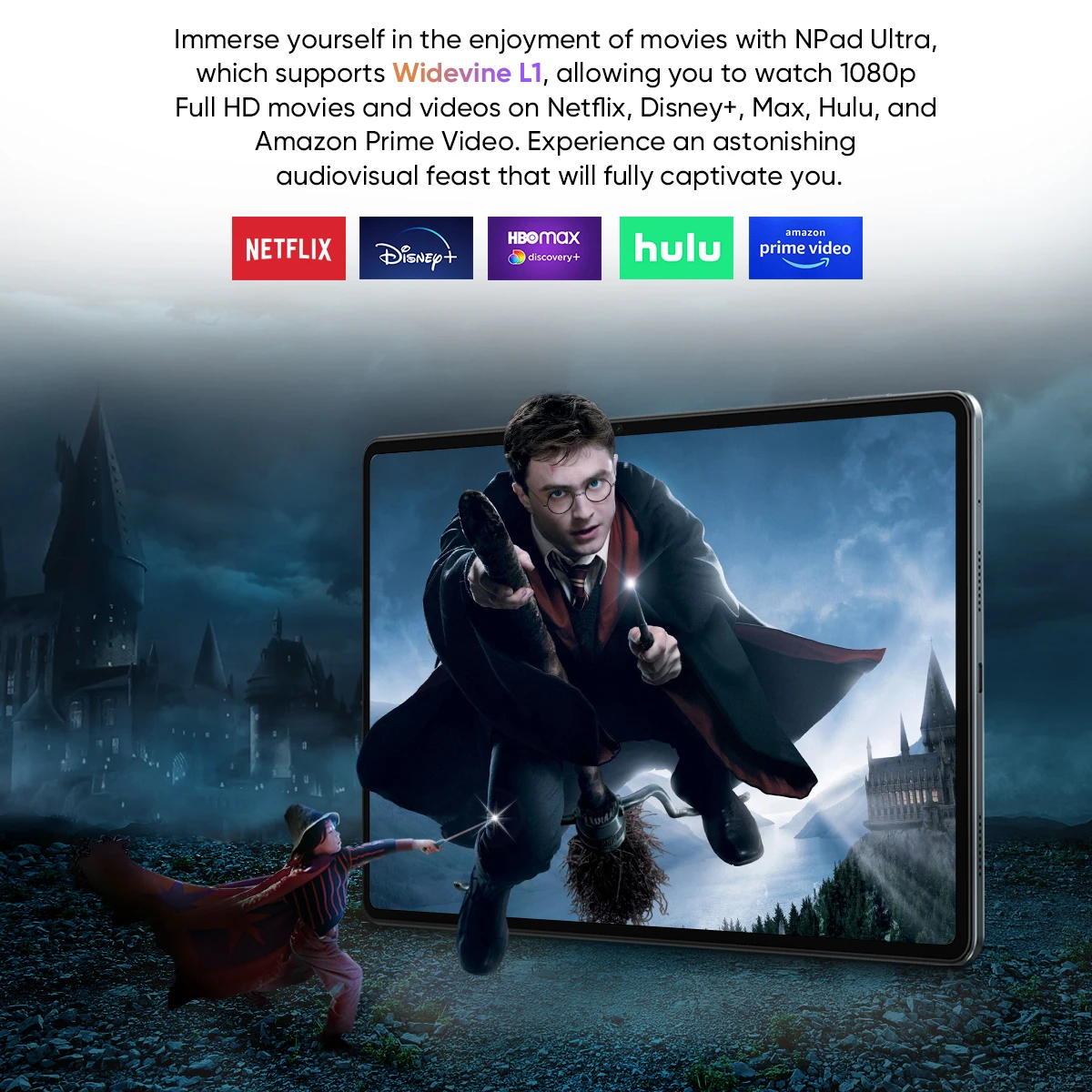 Imerso te stesso nel divertimento dei film con NPad Ultrawhich supporta Widevine L1, ti consentono di guardare film e video Full HD 1080p.Esperienza una festa visiva astonishingaudi che ti catturerà completamente.