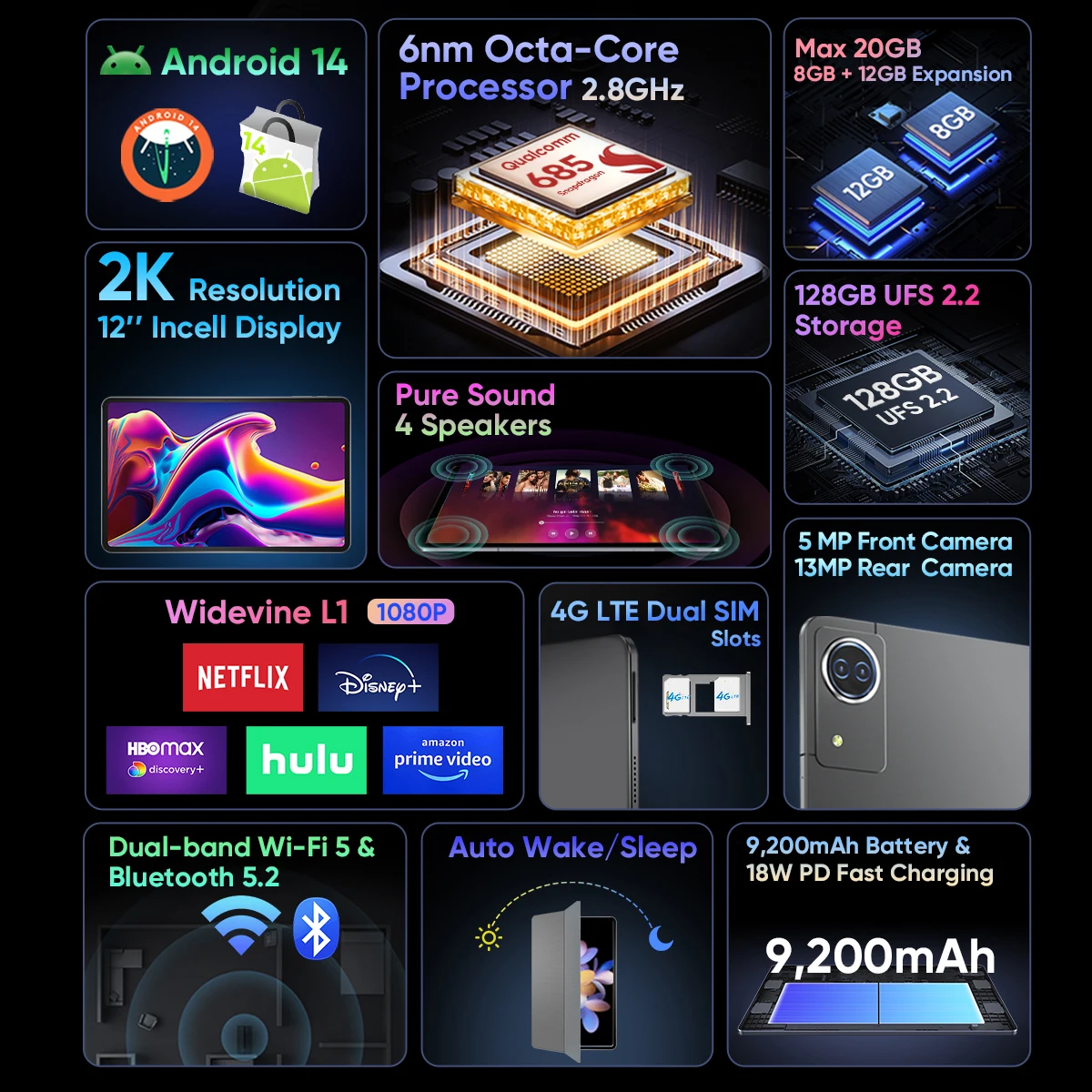 3 reviews for Tablet N-one NPad Ultra, schermo Android 1411,97 pollici 2000*1200 FHD, Snapdragon 685 8 Core Max 2,8 GHz, 128 GB ROM, batteria 9200 mAh