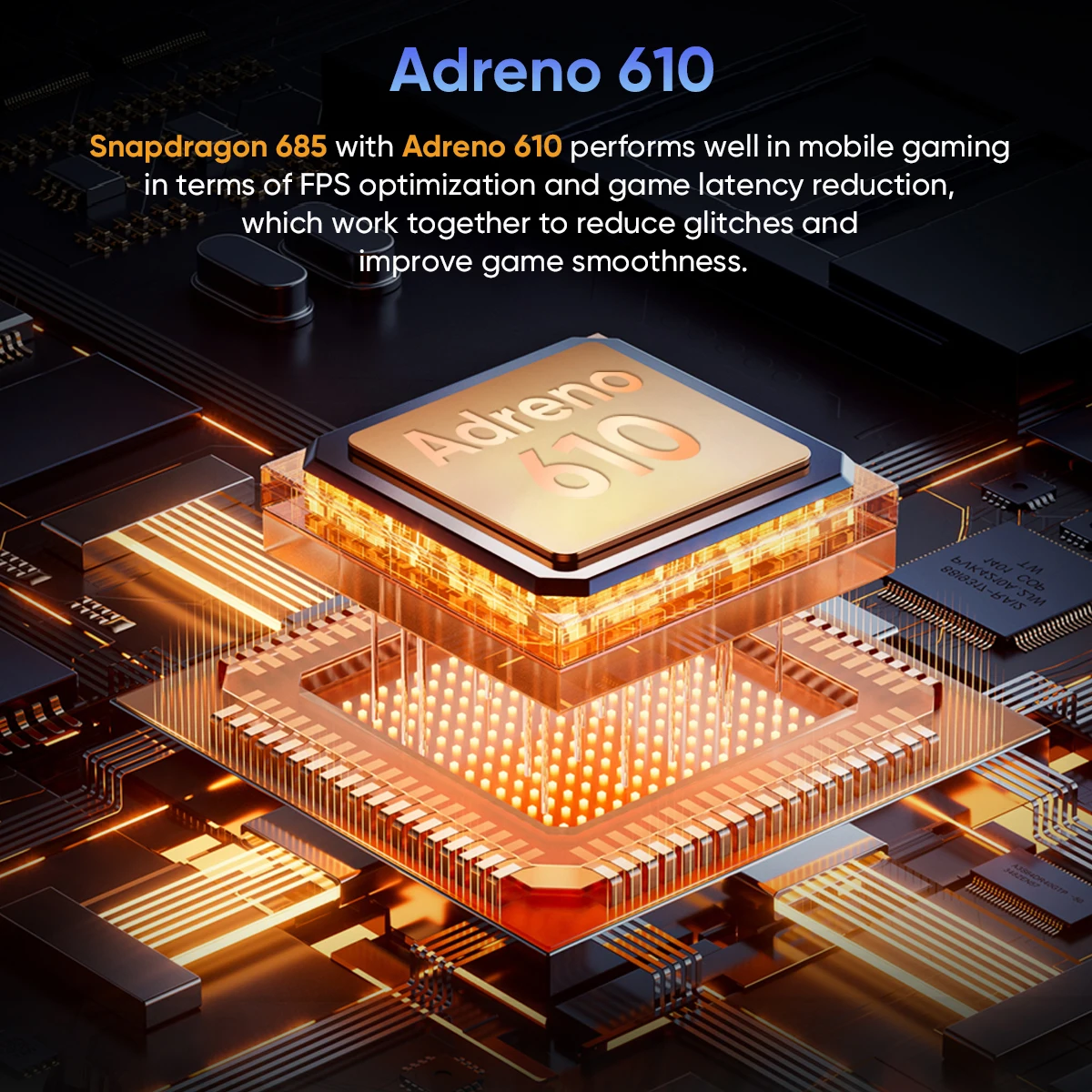 Snapdragon 685 è realizzato con un processo da 6 nm, ha 8 core e una frequenza principale fino a 2,8 GHz, che fornisce super prestazioni, migliorano l’efficienza del lavoro e l’accelerazione dei giochi.