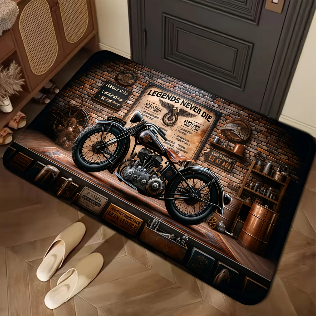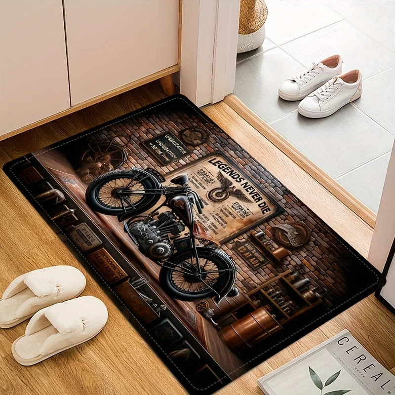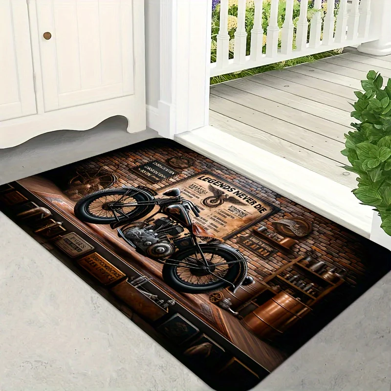 Tappeto da club con motivo motociclistico retrò Zerbino antiscivolo in poliestere 100% lavabile molto adatto per decorare tappeti nel soggiorno