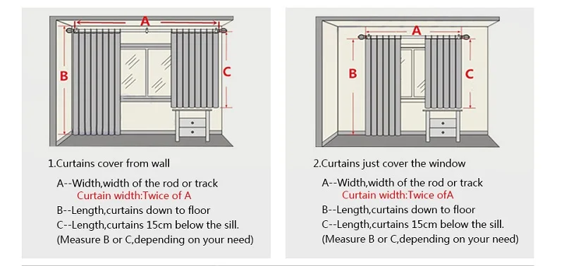 Ti consiglio di scegliere una larghezza della tenda 2 volte più larga della larghezza del palo crea pieghe. Ad esempio, se il palo è di 40 pollici, seleziona una larghezza della tenda di 80 pollici.