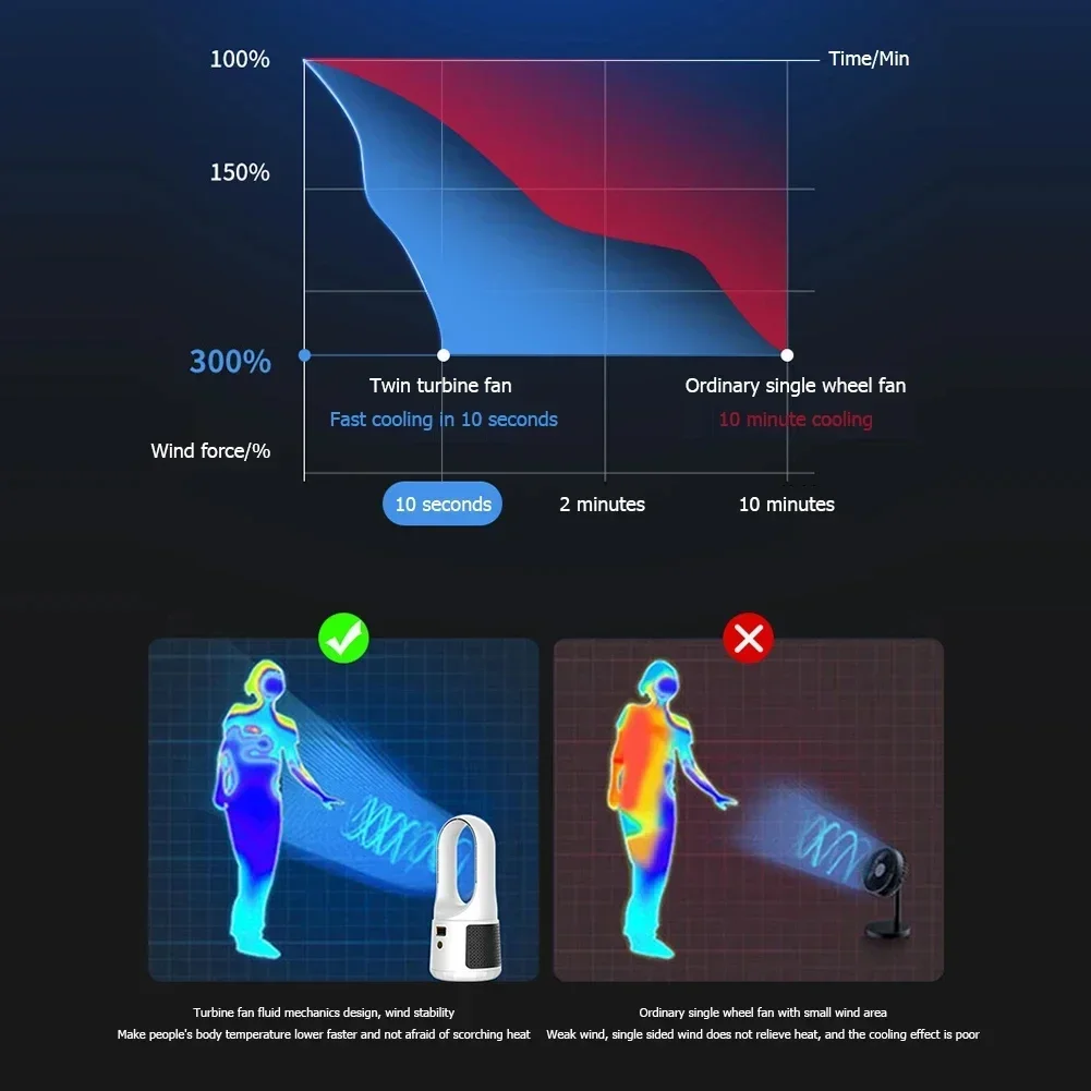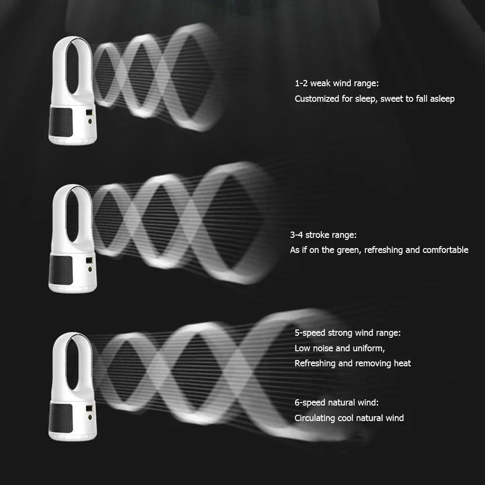 Ventilatore elettrico ricaricabile Ventilatore da pavimento senza lama Raffreddamento Torre di sicurezza per bambini Ventilatore da 2000 mAh Dispositivo di raffreddamento dell’aria domestico 6 marce