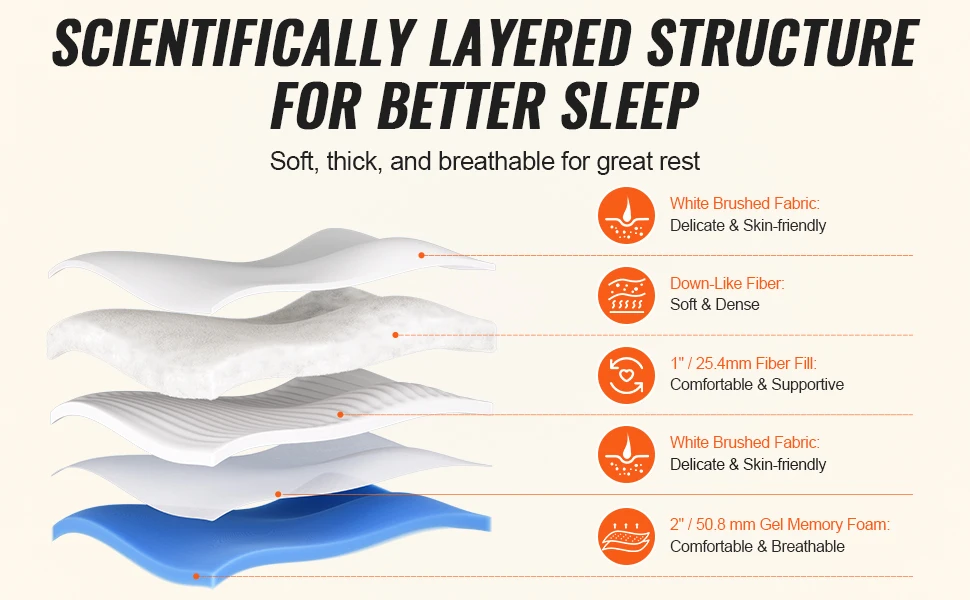 Ogni strato è realizzato con materiali traspiranti di alta qualità per favorire il flusso d’aria e allontanare l’umidità. Il nostro coprimaterasso aggiunge gel rinfrescante per mantenere le cose fresche, rendendolo ideale per chi ha il sonno caldo, soprattutto in estate.