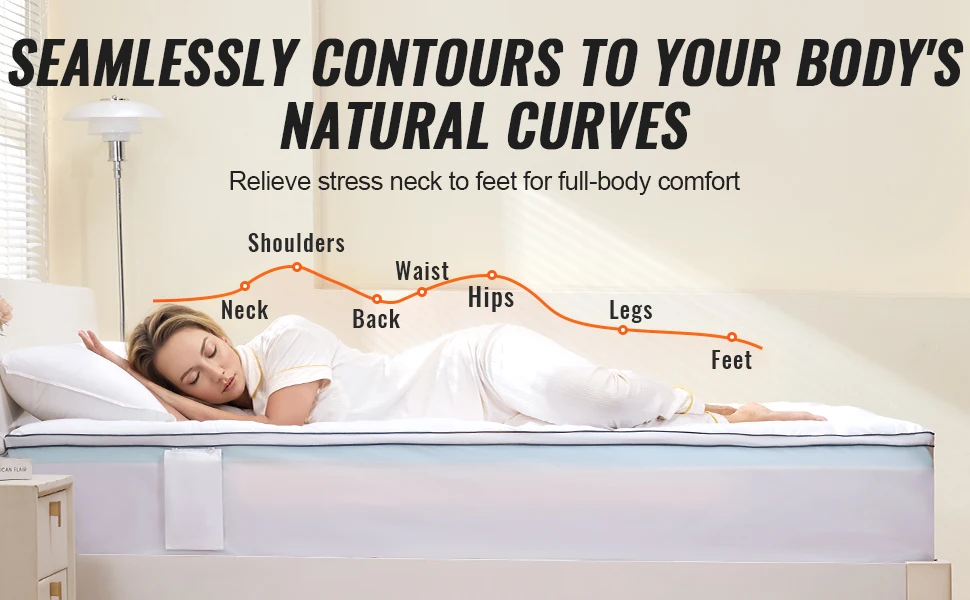 Miglioramento del comfort durante il sonno: il nostro coprimaterasso è progettato per adattarsi alle curve del tuo corpo, questa forma allevia i punti di pressione per un rilassamento profondo. Il memory foam a rimbalzo lento si adatta alla tua forma, aiutando ad alleviare il disagio e sostenendo l’allineamento naturale della colonna vertebrale, creando un ambiente di sonno ideale.