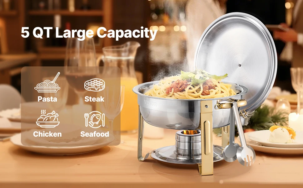 Questo set di scaldavivande ti offre più spazio per ospitare il cibo durante le feste e il self-service ed è sufficiente per almeno 4 persone.