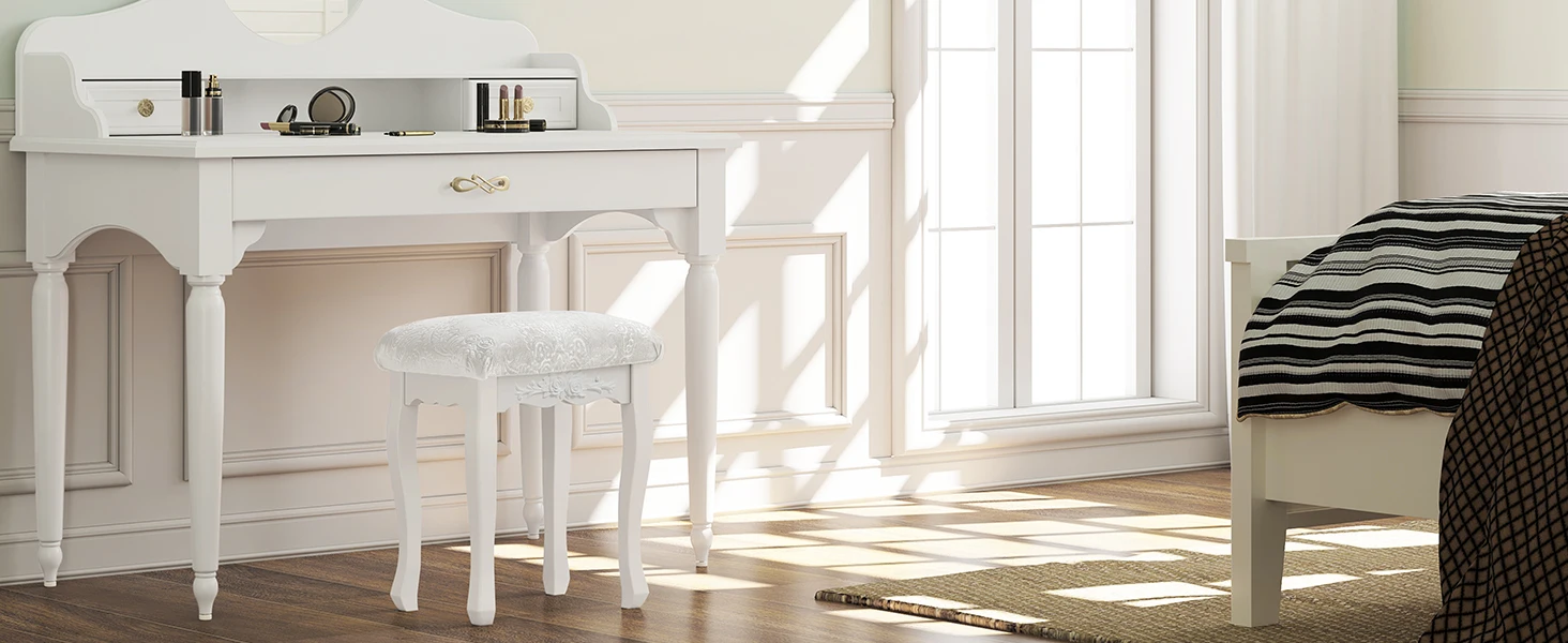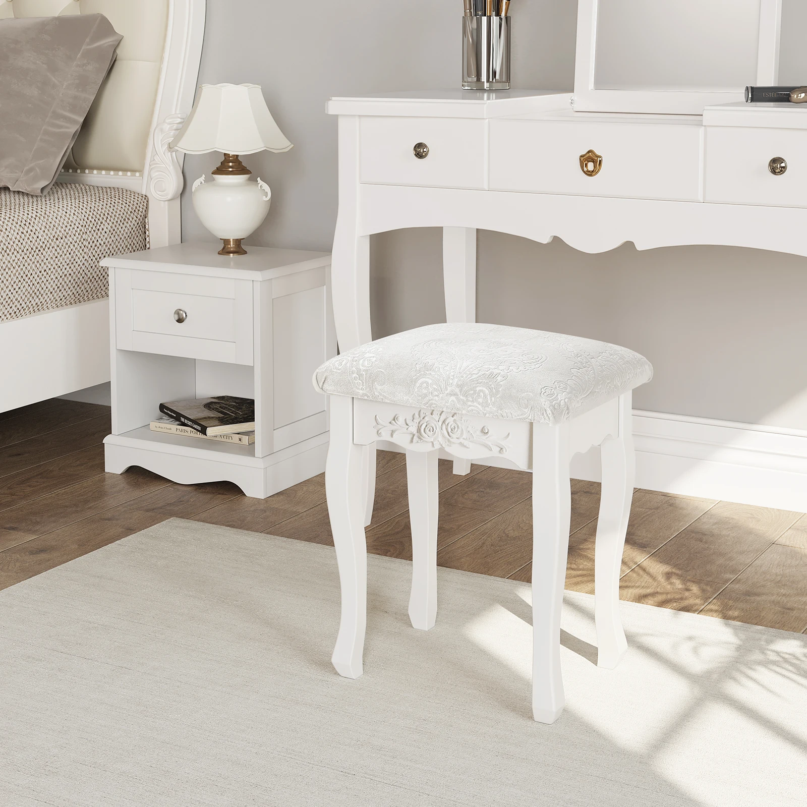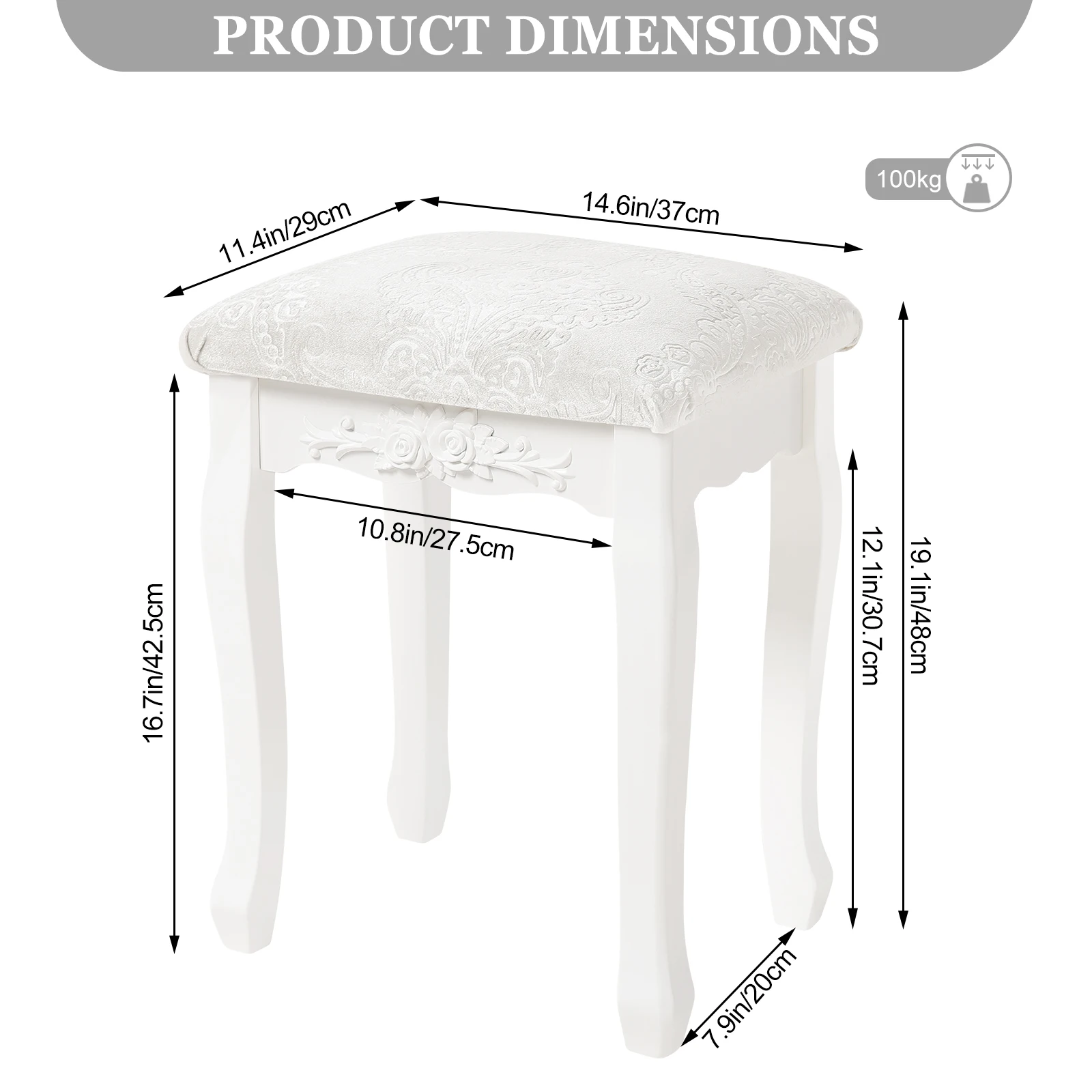 2 reviews for WOLTU 1PC Sgabello da toeletta Sgabello da trucco imbottito vintage in stile barocco Sedia da toeletta bianca crema per soggiorno camera da letto