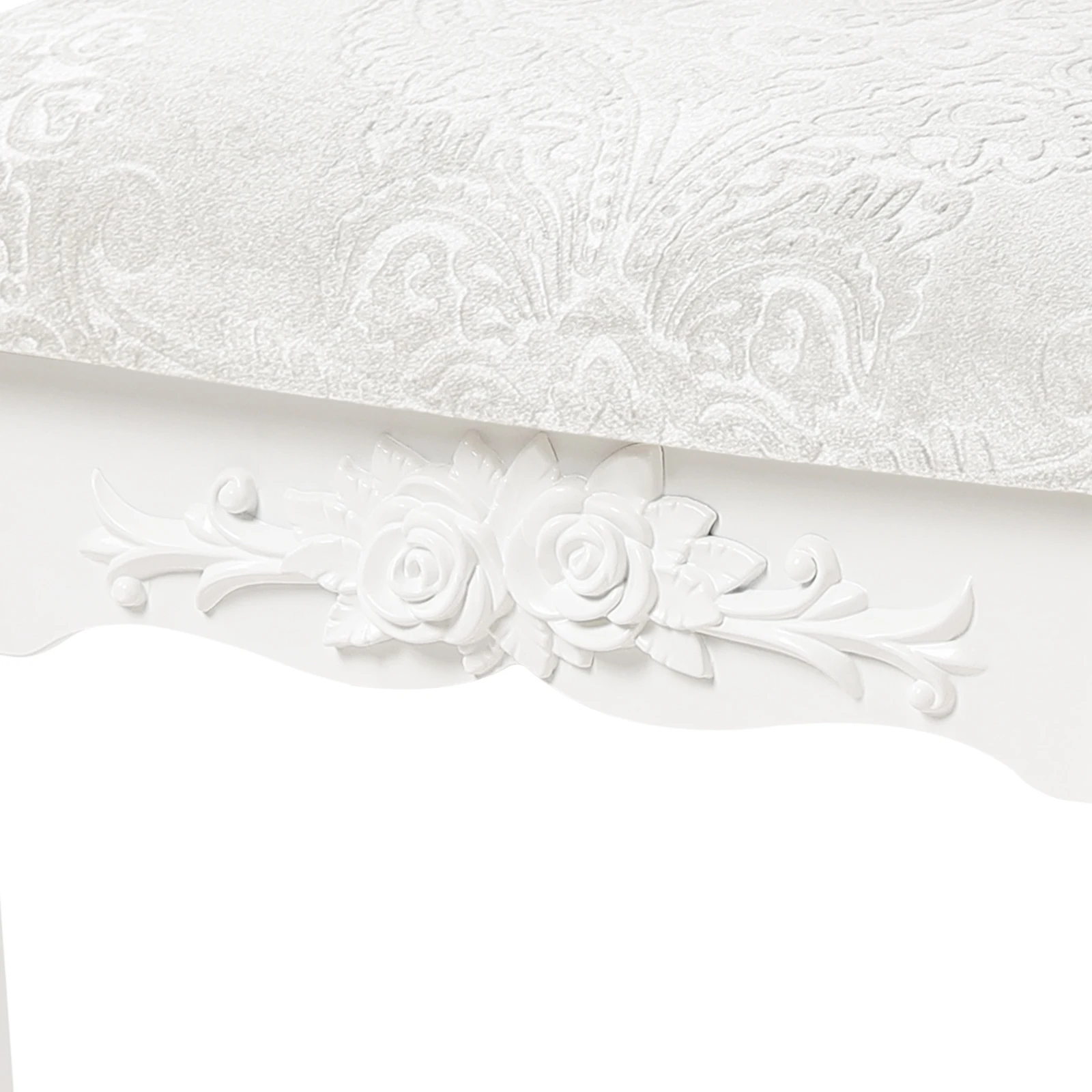 WOLTU 1PC Sgabello da toeletta Sgabello da trucco imbottito vintage in stile barocco Sedia da toeletta bianca crema per soggiorno camera da letto