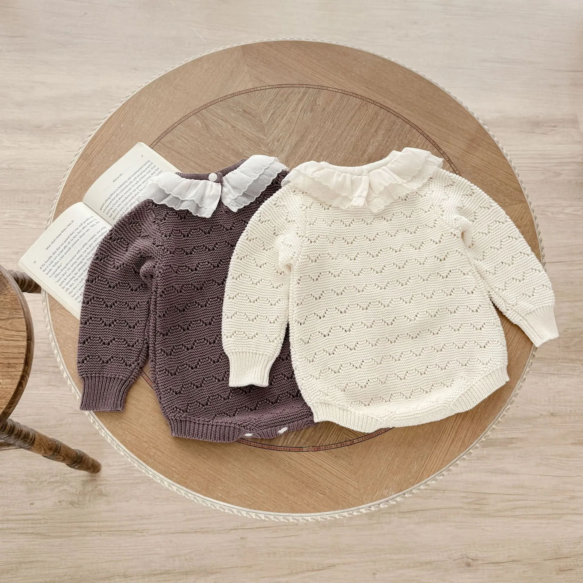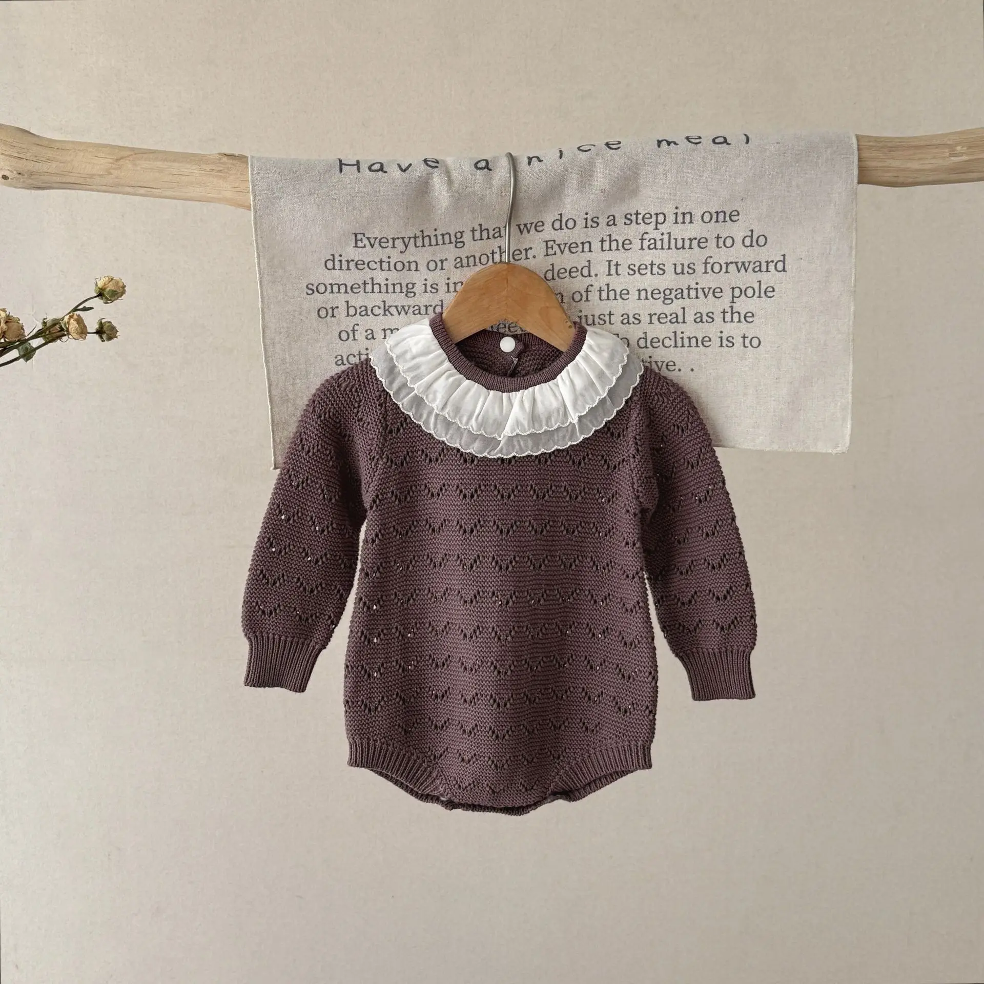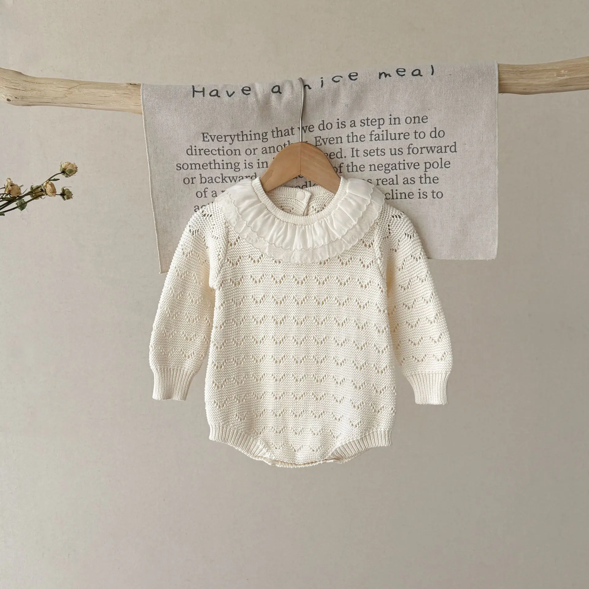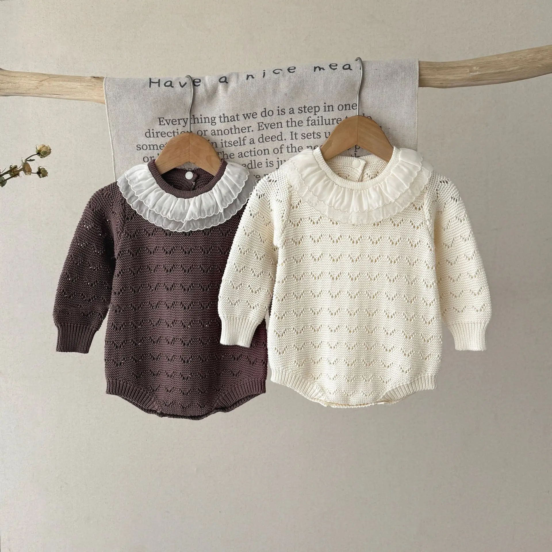 0-24M Neonato Pagliaccetto in maglia Colletto arricciato Infantile Neonata Ragazzo Pagliaccetto Tuta in maglia Scava Fuori Caldo Autunno Inverno Abbigliamento Maglione