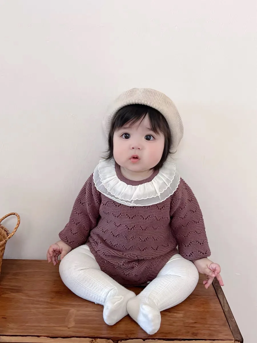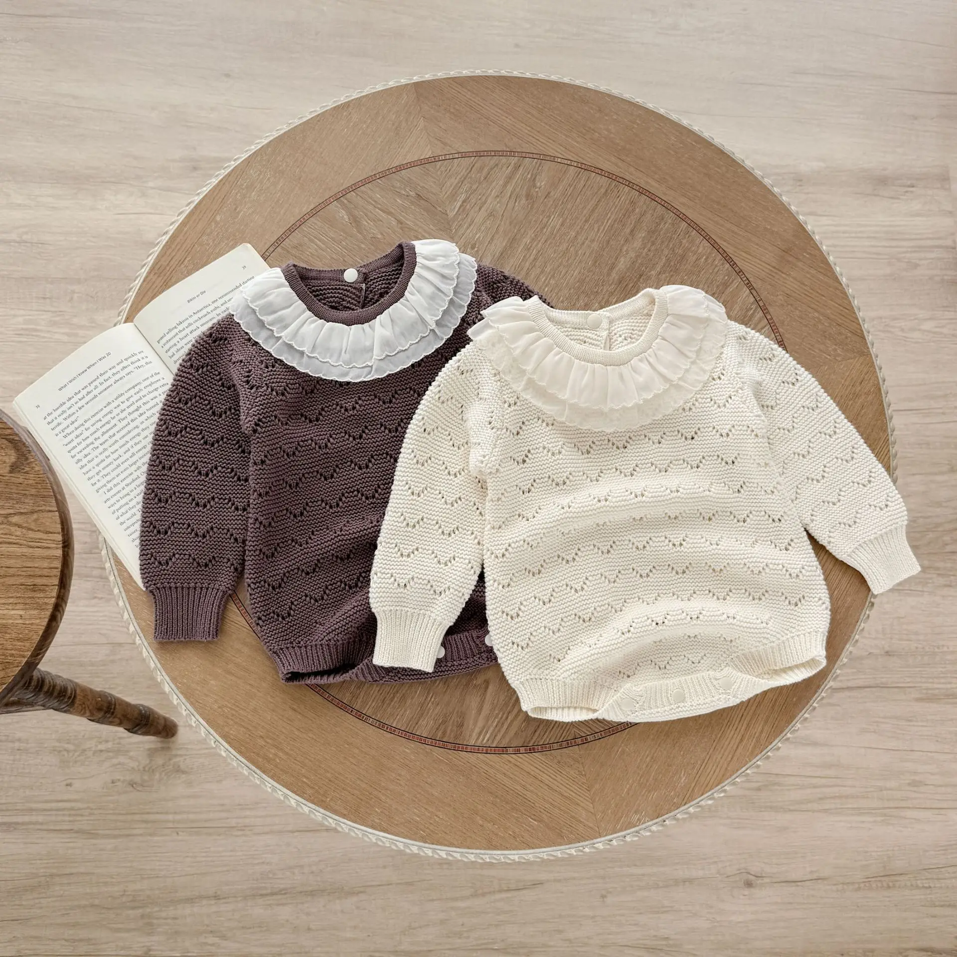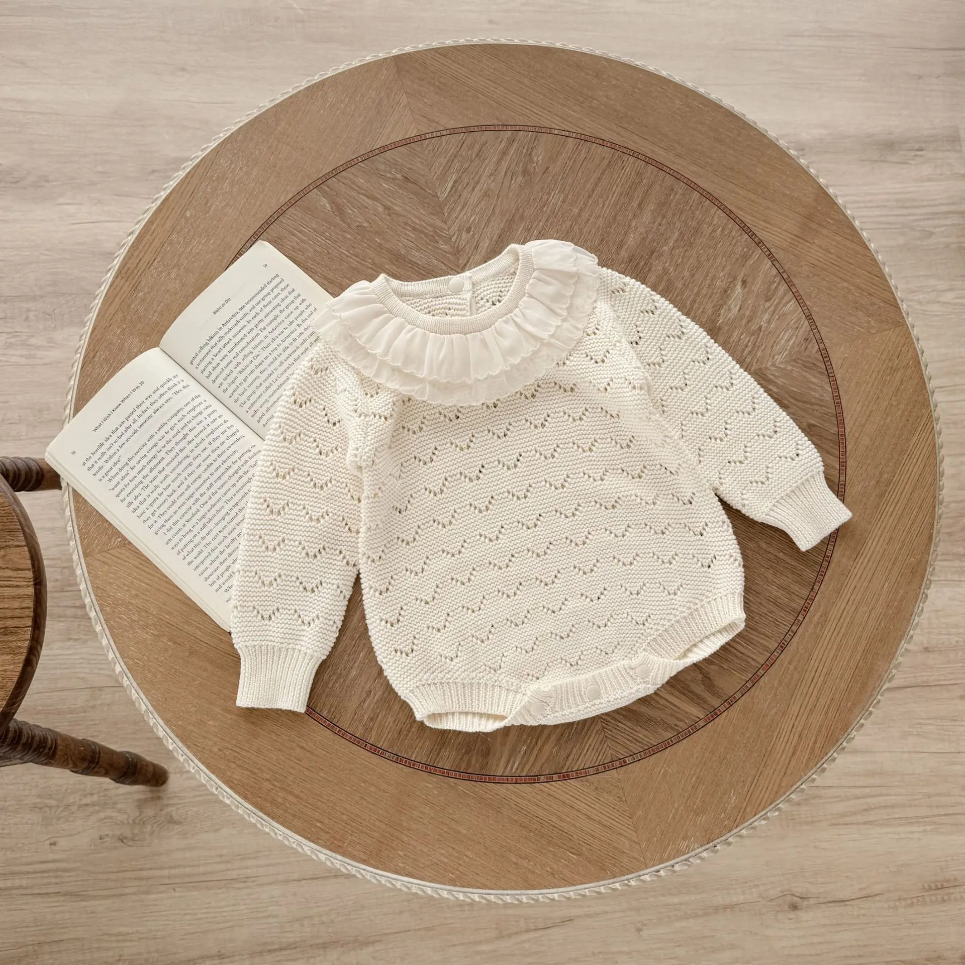 0-24M Neonato Pagliaccetto in maglia Colletto arricciato Infantile Neonata Ragazzo Pagliaccetto Tuta in maglia Scava Fuori Caldo Autunno Inverno Abbigliamento Maglione