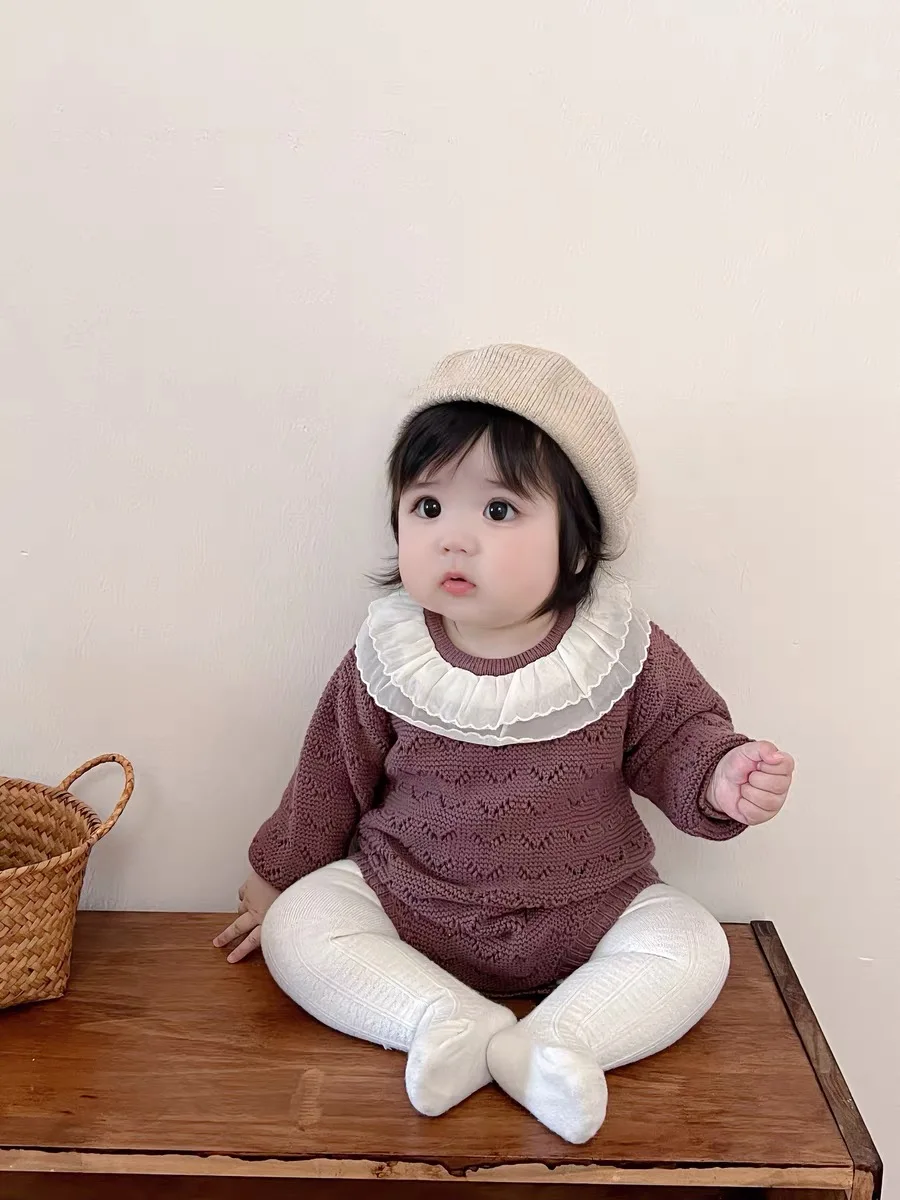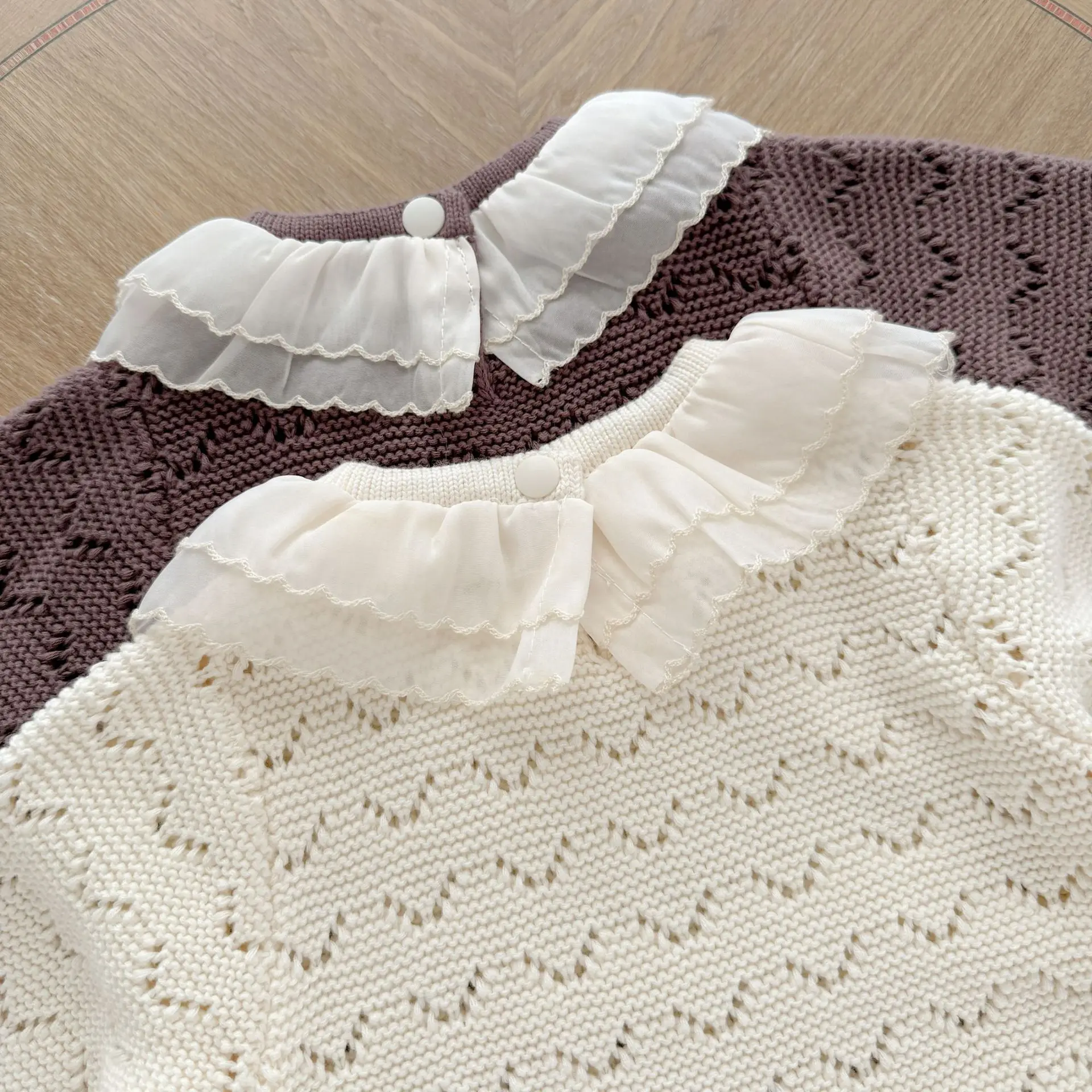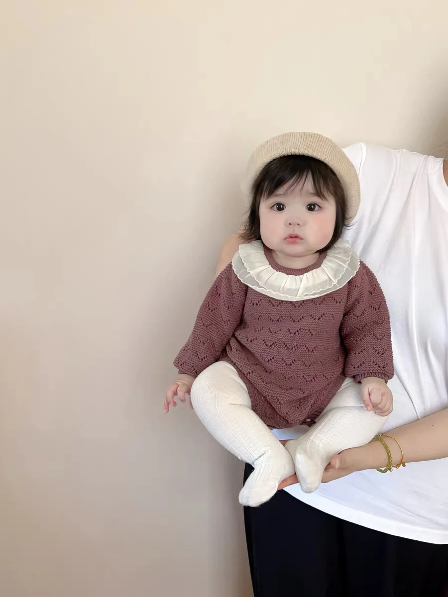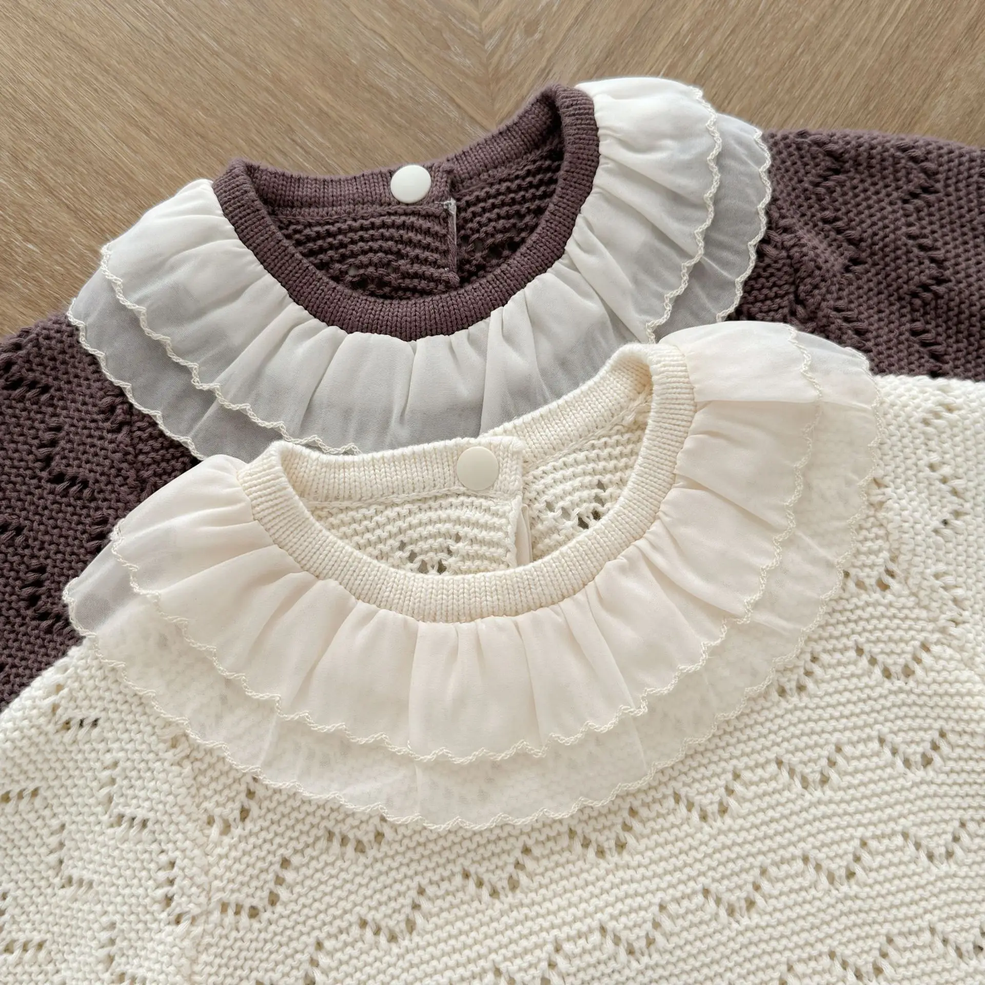 0-24M Neonato Pagliaccetto in maglia Colletto arricciato Infantile Neonata Ragazzo Pagliaccetto Tuta in maglia Scava Fuori Caldo Autunno Inverno Abbigliamento Maglione