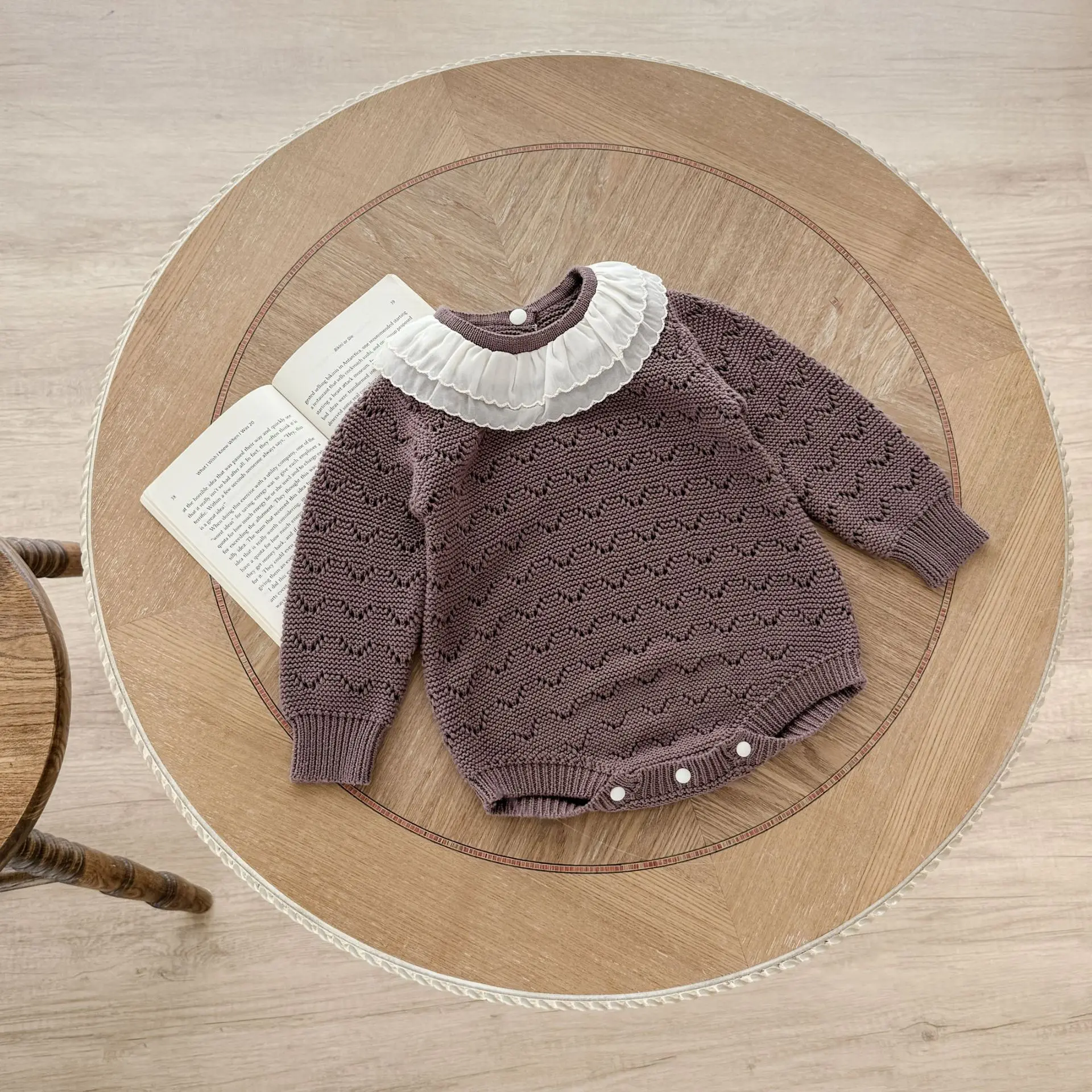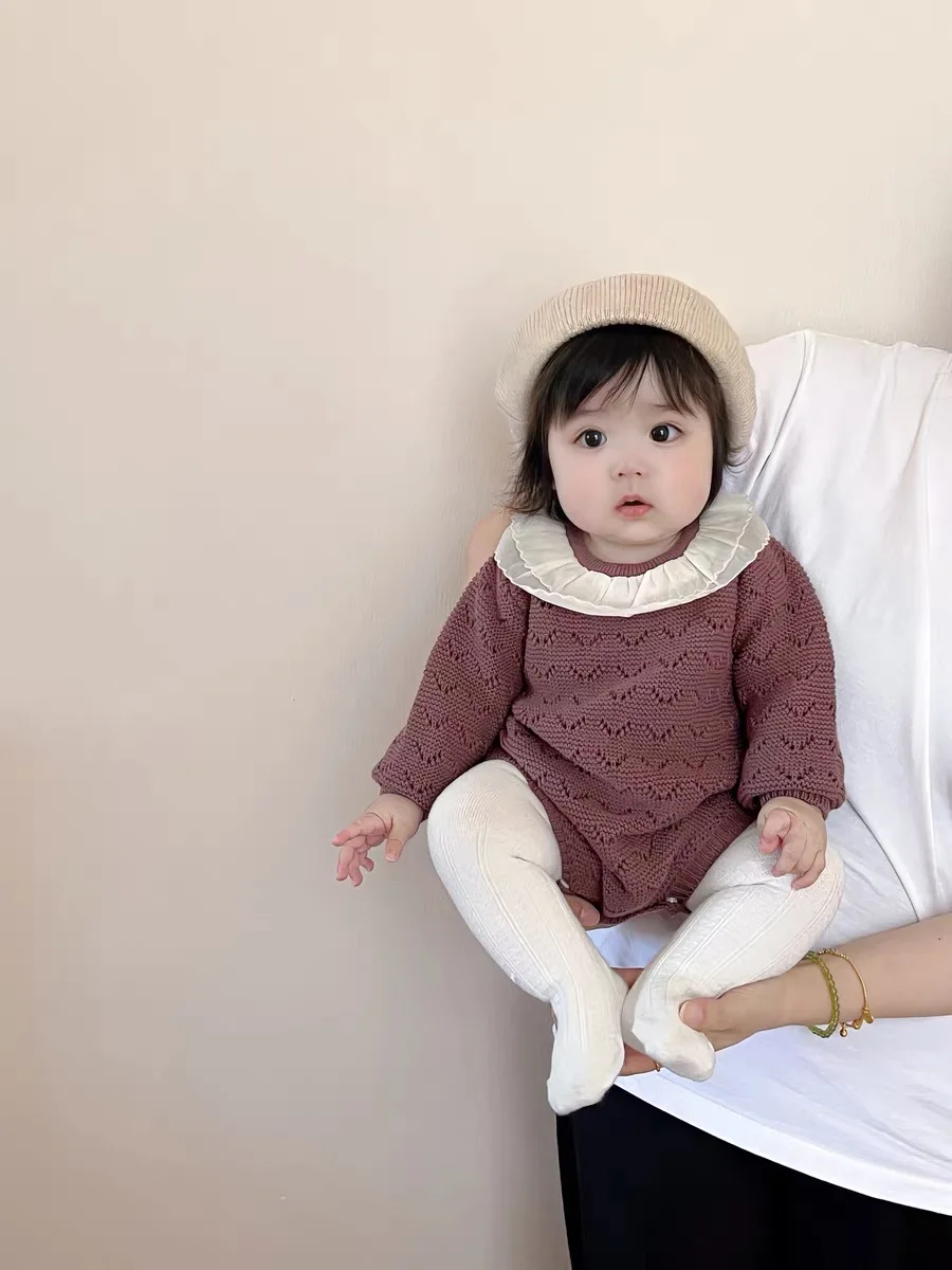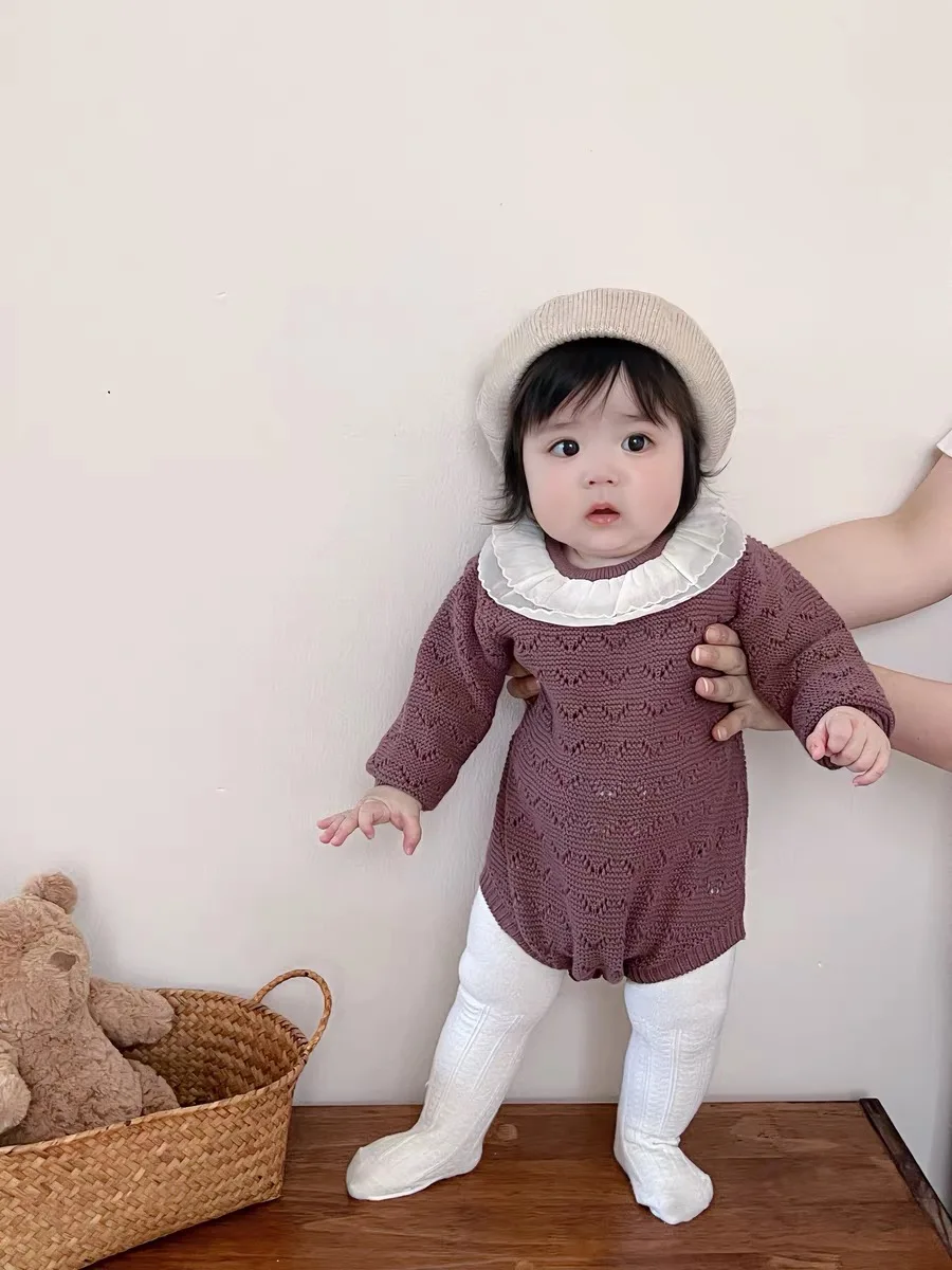 0-24M Pagliaccetto in maglia per neonato Colletto arricciato Pagliaccetto per neonato Tutina in maglia Scava fuori caldo autunno inverno Abbigliamento maglione