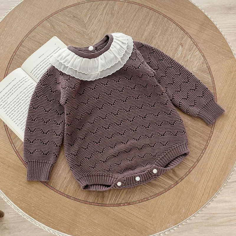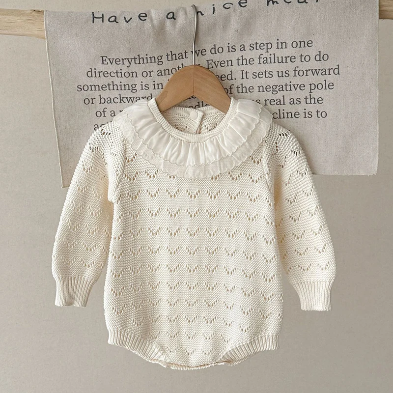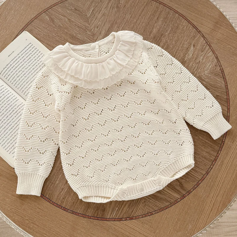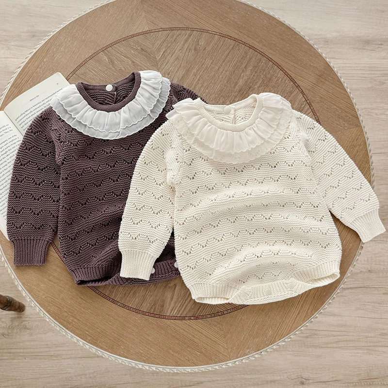0-24M Neonato Pagliaccetto in maglia Colletto arricciato Infantile Neonata Ragazzo Pagliaccetto Tuta in maglia Scava Fuori Caldo Autunno Inverno Abbigliamento Maglione