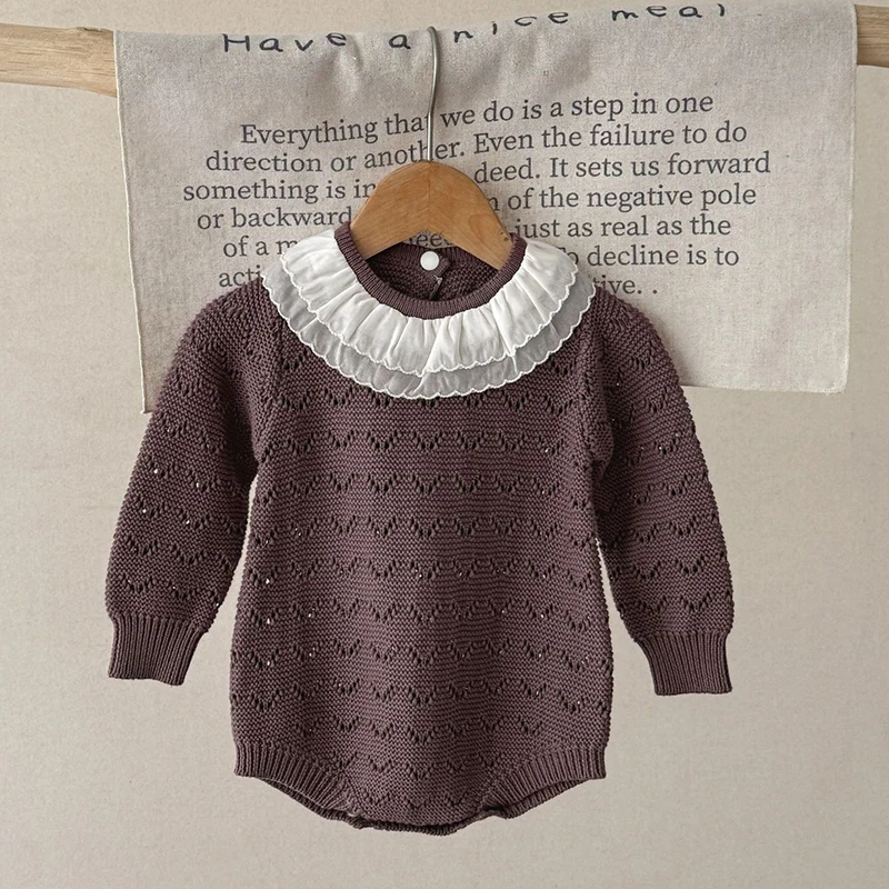 0-24M Pagliaccetto in maglia per neonato Colletto arricciato Pagliaccetto per neonato Tutina in maglia Scava fuori caldo autunno inverno Abbigliamento maglione