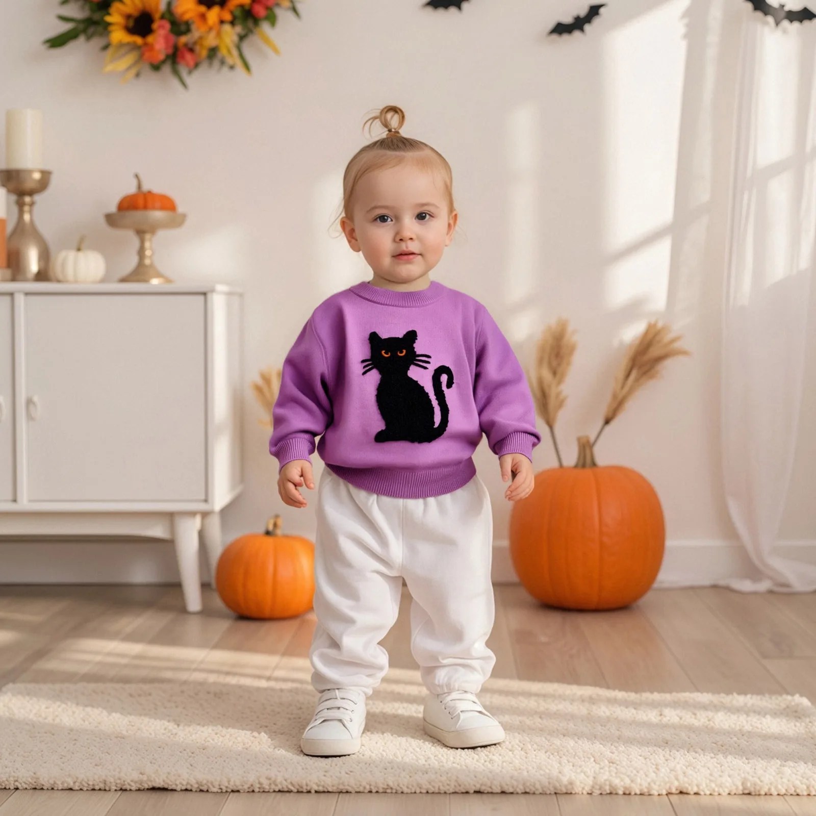 0-3 anni bambini neonata ragazzo maglione di Halloween autunno inverno manica lunga girocollo gatto ricamo pullover in maglia top maglieria calda