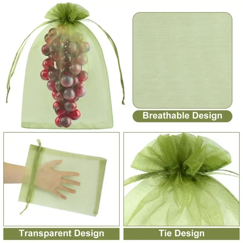 1-100pcs Strawberry Grapes Fruit Grow Bags Netting Mesh Vegetable Plant Protection Bags For Pest Control Anti-Bird Garden Tools