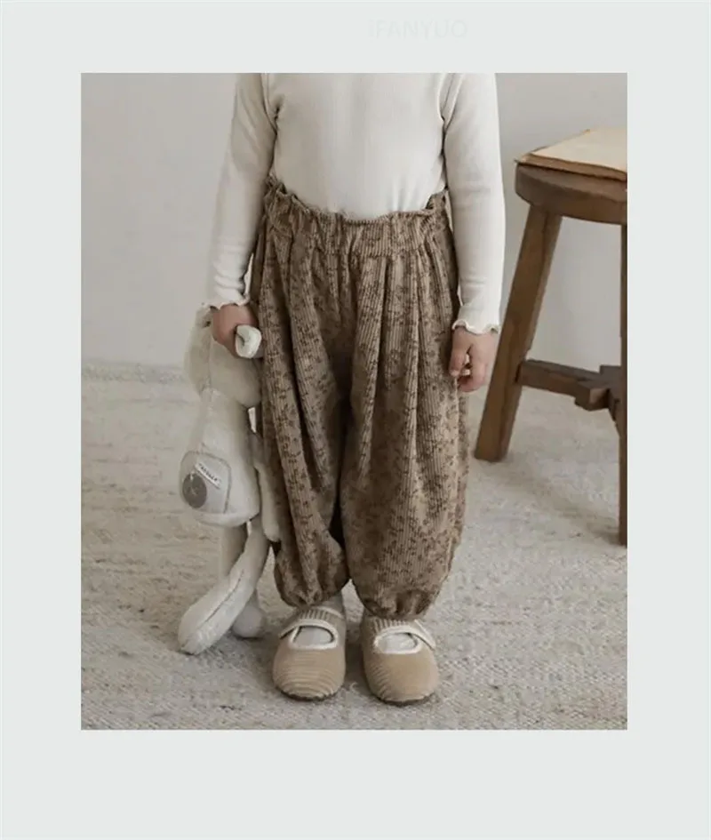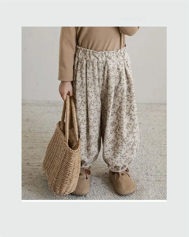 1-12Y bambino coreano abbigliamento casual autunno bambino retrò allentato ragazzo bambini all’aperto pantaloni harem stampati ragazza bambini moda pantaloni