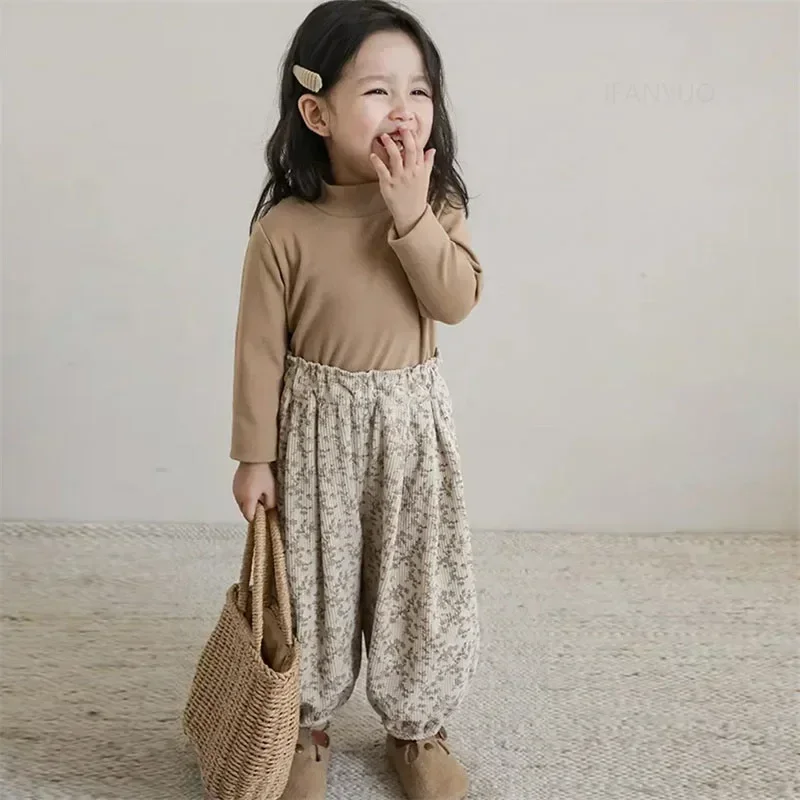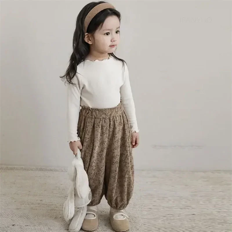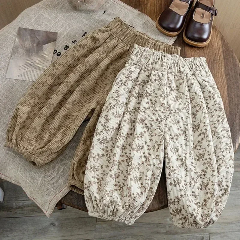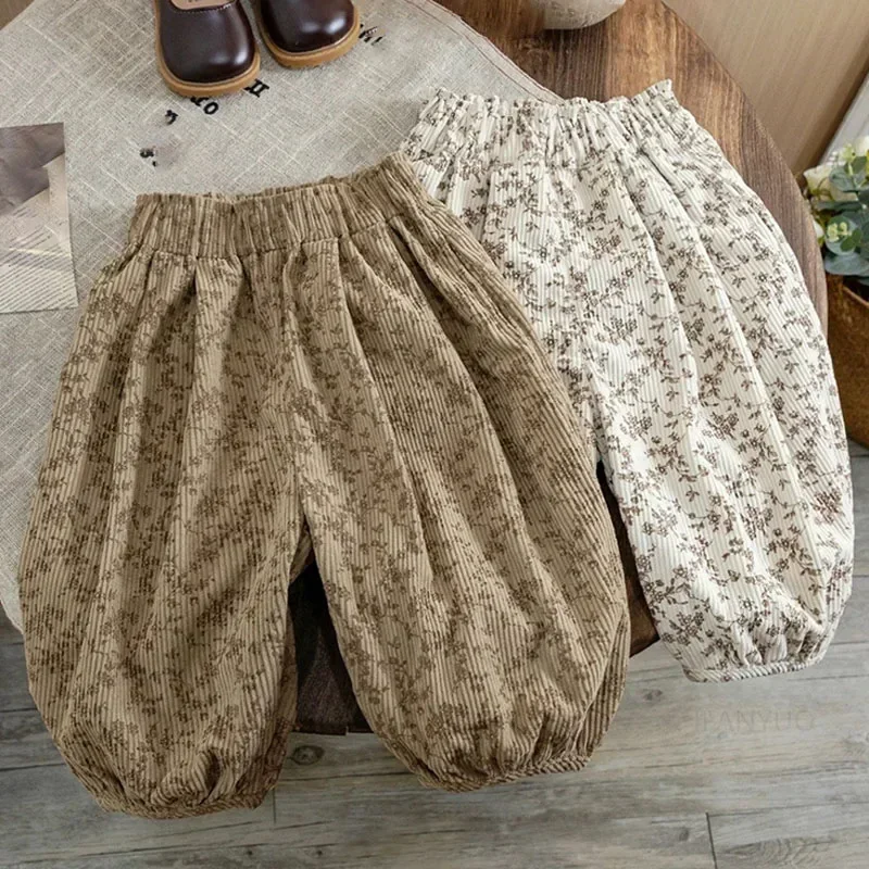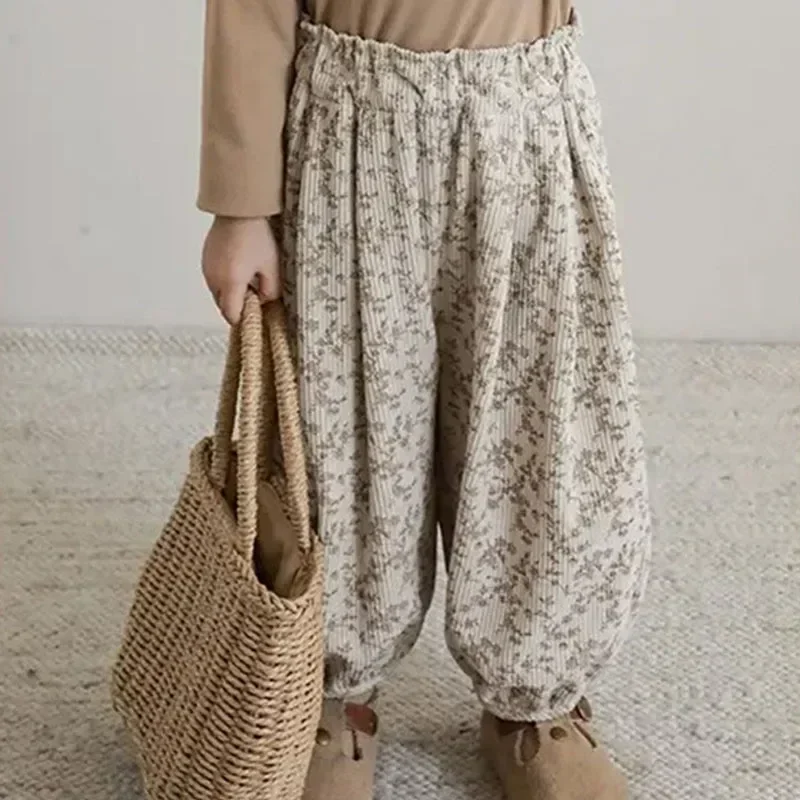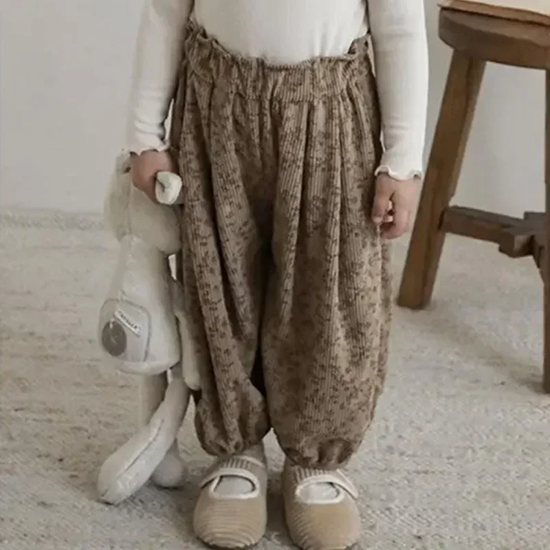 1-12Y bambino coreano abbigliamento casual autunno bambino retrò allentato ragazzo bambini all’aperto pantaloni harem stampati ragazza bambini moda pantaloni