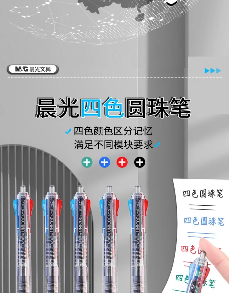 1/2/4/6/12 M&G Penne a sfera multicolori Penne colorate 4 in 1 0,7 mm Inchiostri assortiti Penna a sfera a 4 colori Materiale scolastico per ufficio