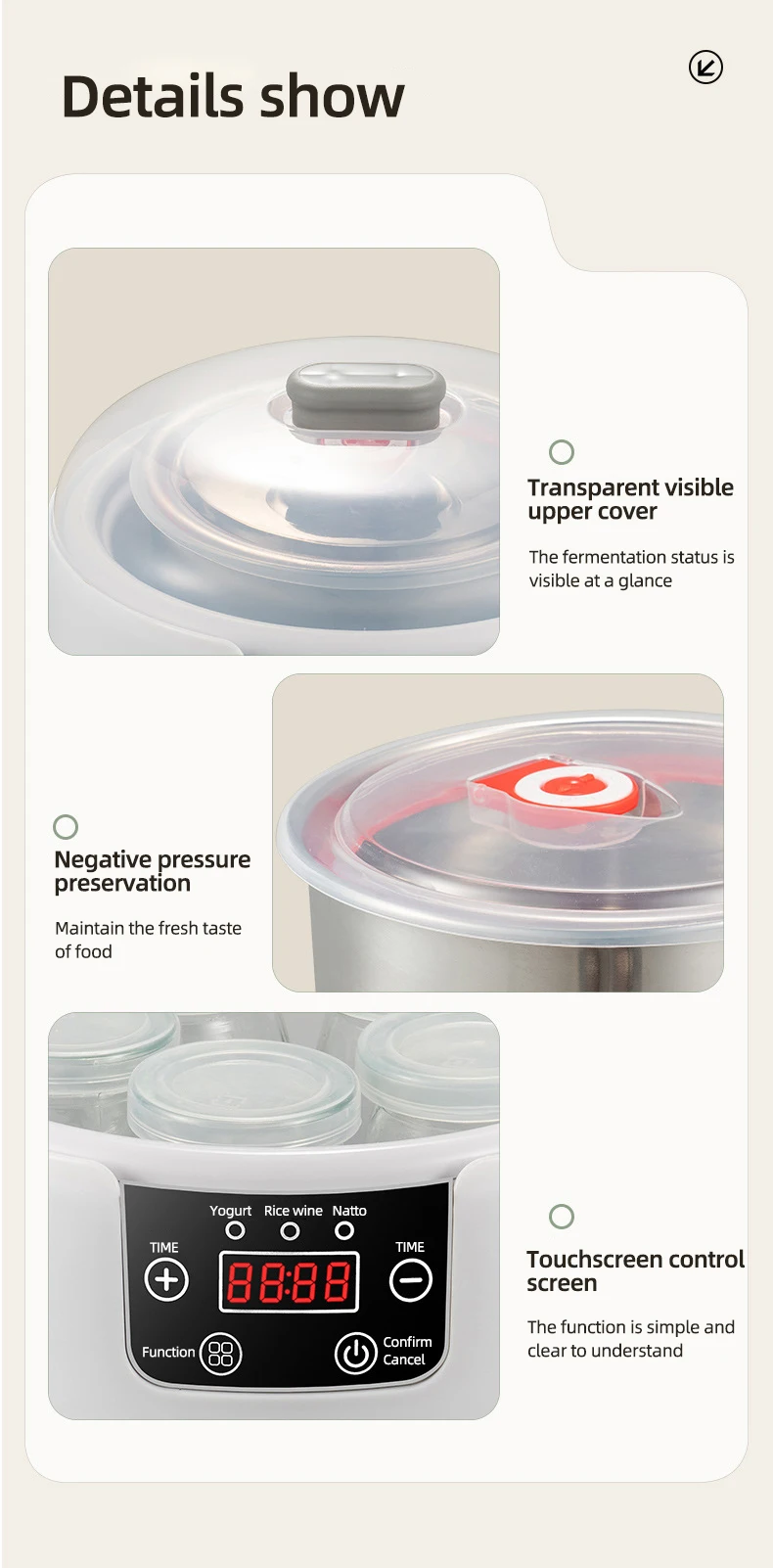 1.2L Automatico Yogurtiera Multifunzionale Macchina Per Yogurt Cucina Riso Vino Maker Natto Macchina Per La Fermentazione Per Uso Domestico spina DEGLI STATI UNITI/UE