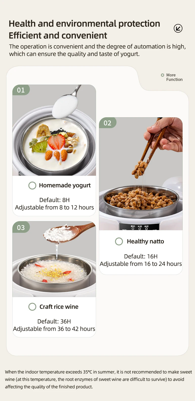 Natto: Temperatura predefinita 36℃, regolabile da 36 a 45℃.