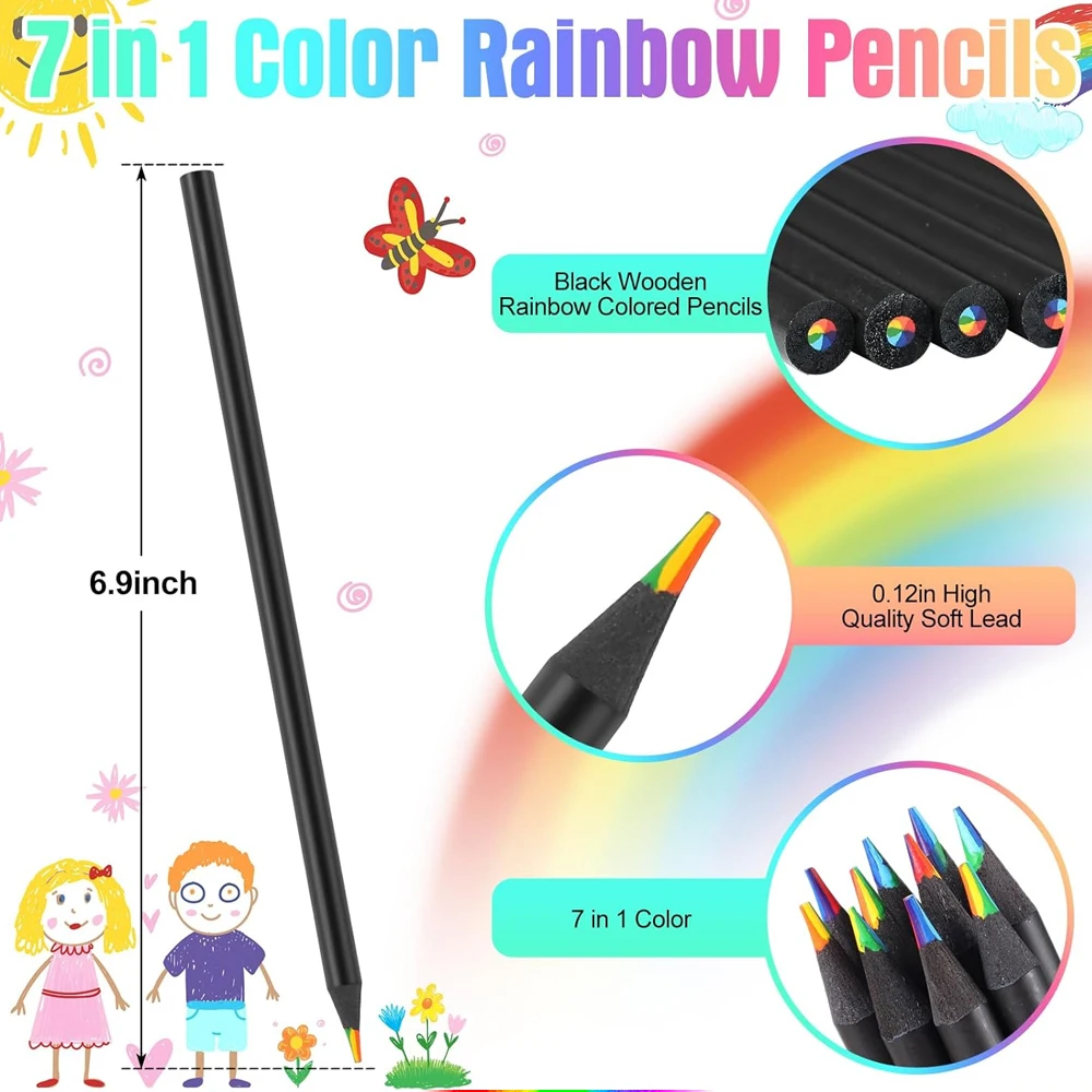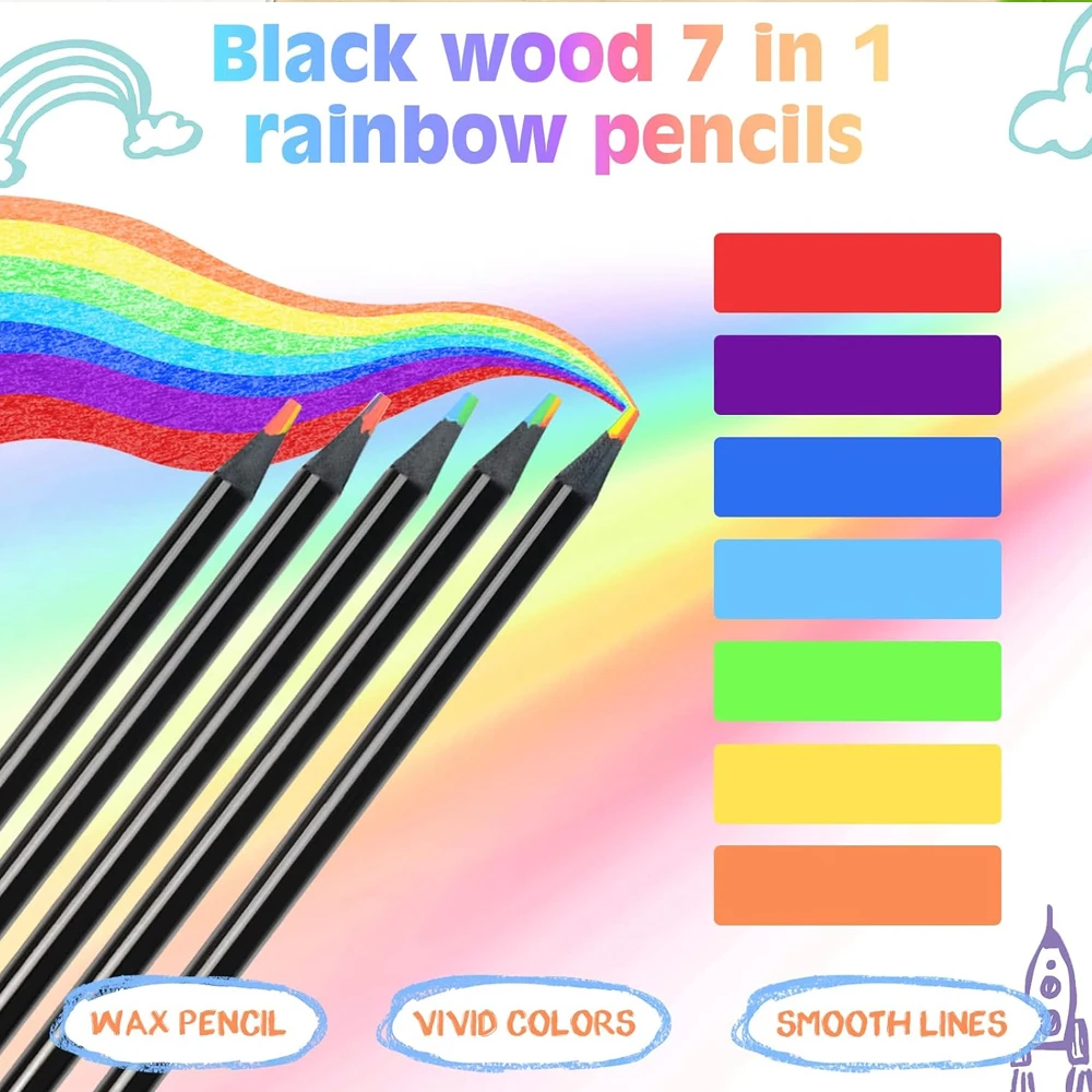 Matite arcobaleno 7 in 1: le nostre matite colorate in legno nero hanno 7 colori diversi, puoi facilmente passare da una tonalità all’altra per creare bellissime sfumature ed effetti di ombreggiatura.La presa morbida e confortevole di queste matite colorate arcobaleno le rende facili da usare per lunghi periodi di tempo, senza causare alcun disagio o affaticamento.Che tu stia disegnando, disegnando, colorando o ombreggiando, queste matite ti coprono.